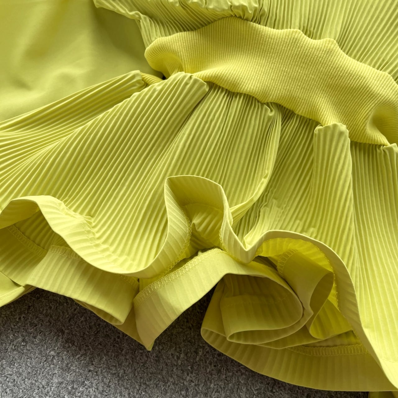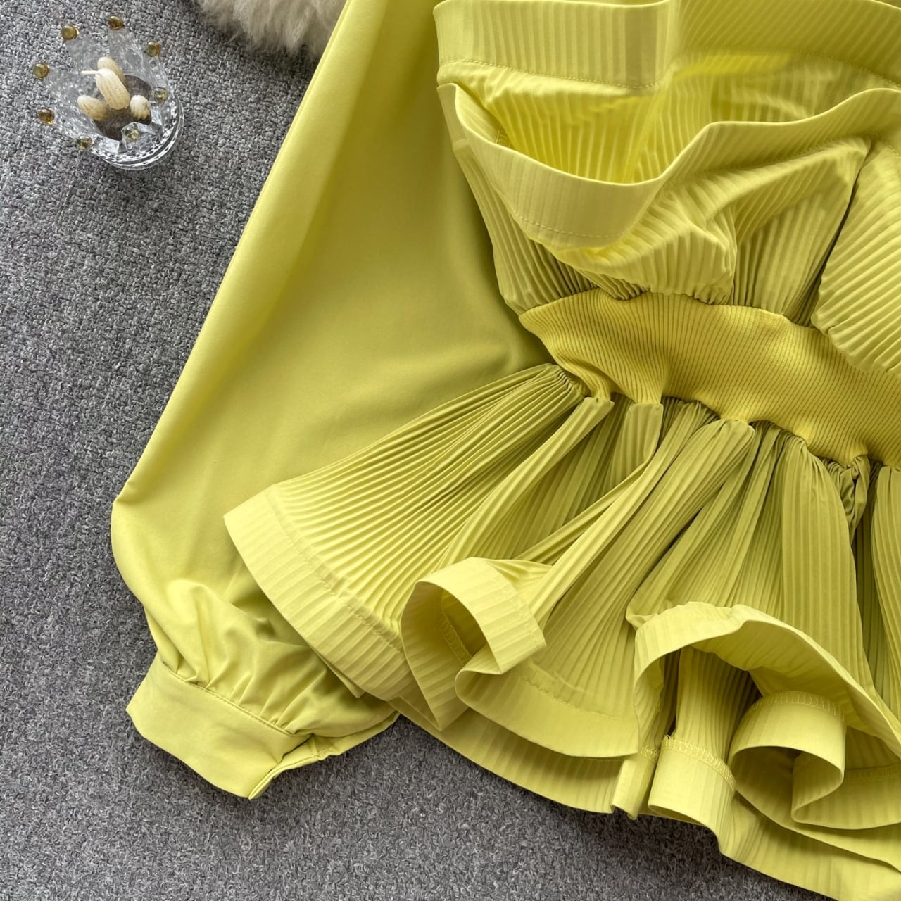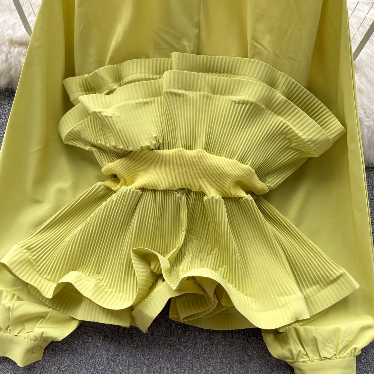 ウエスト部分に施されたプリーツが、スタイルにメリハリを与えます。