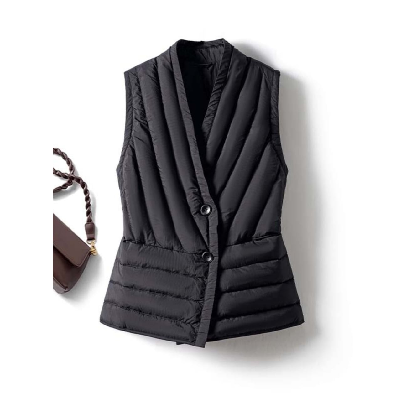 Button Front Short Down Vest 01033