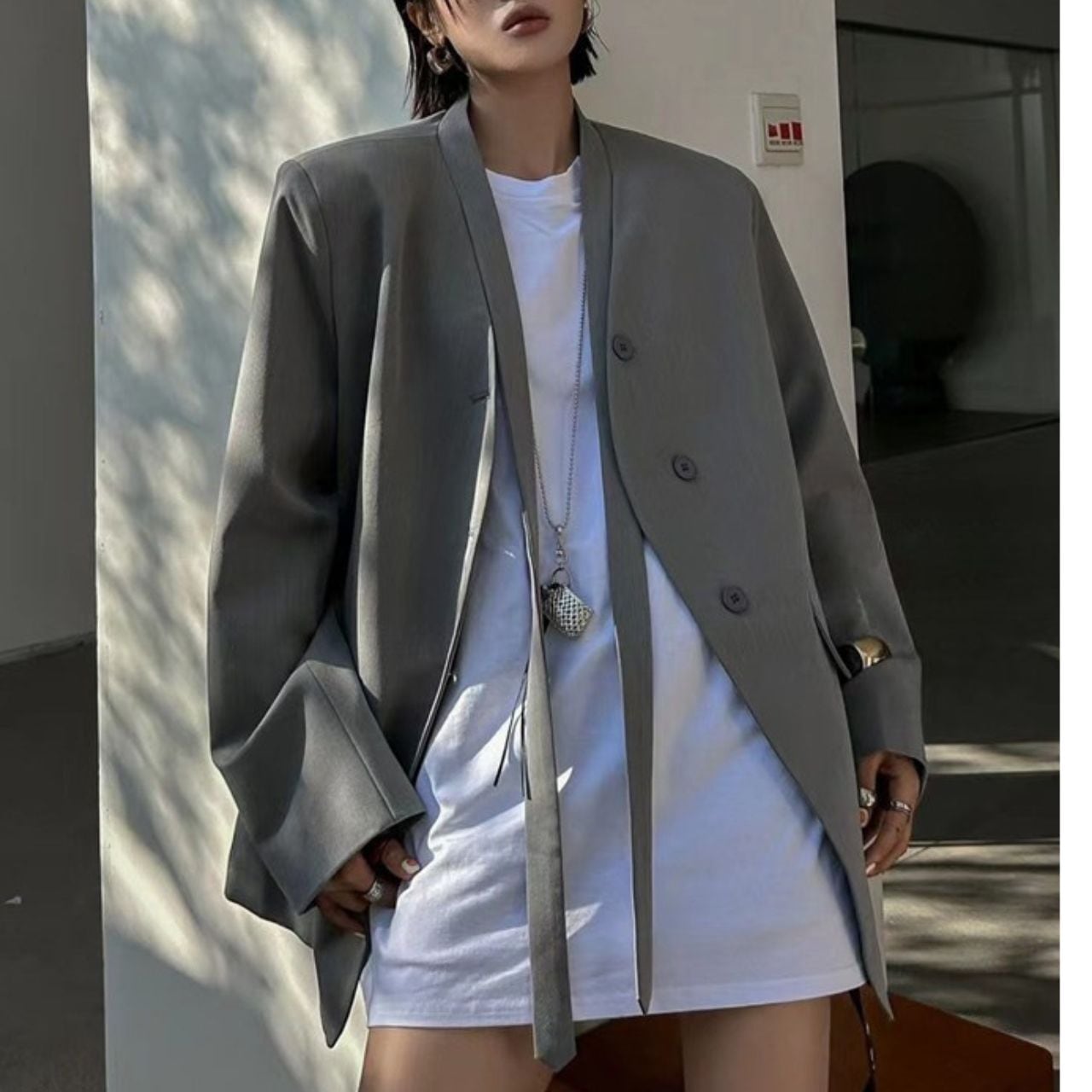 No-Collar Oversized Jacket 01086