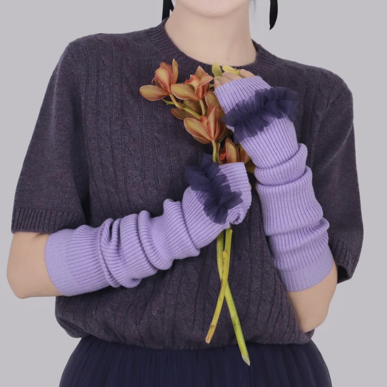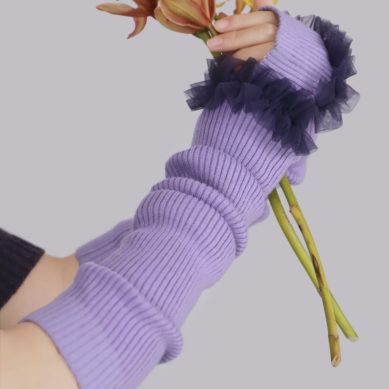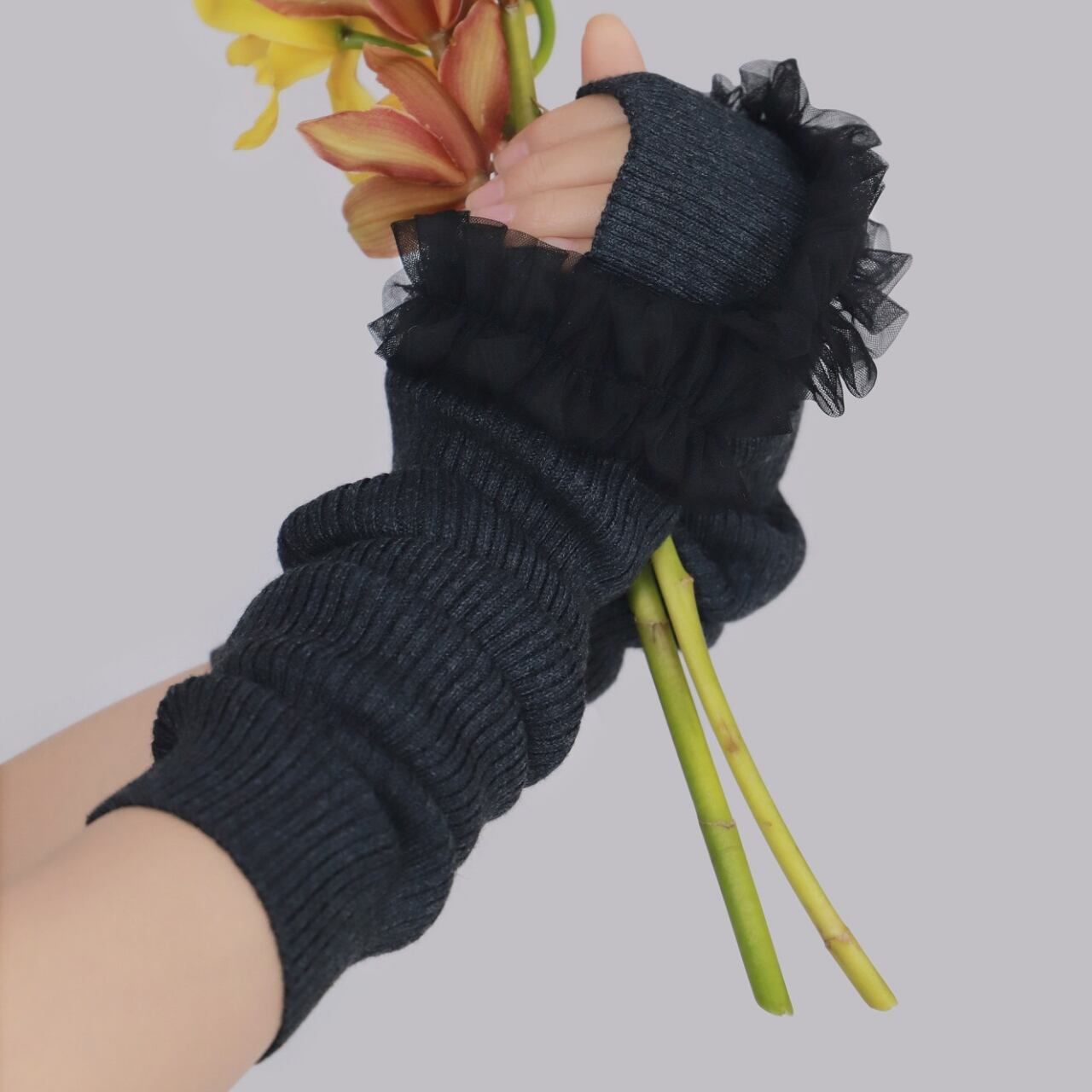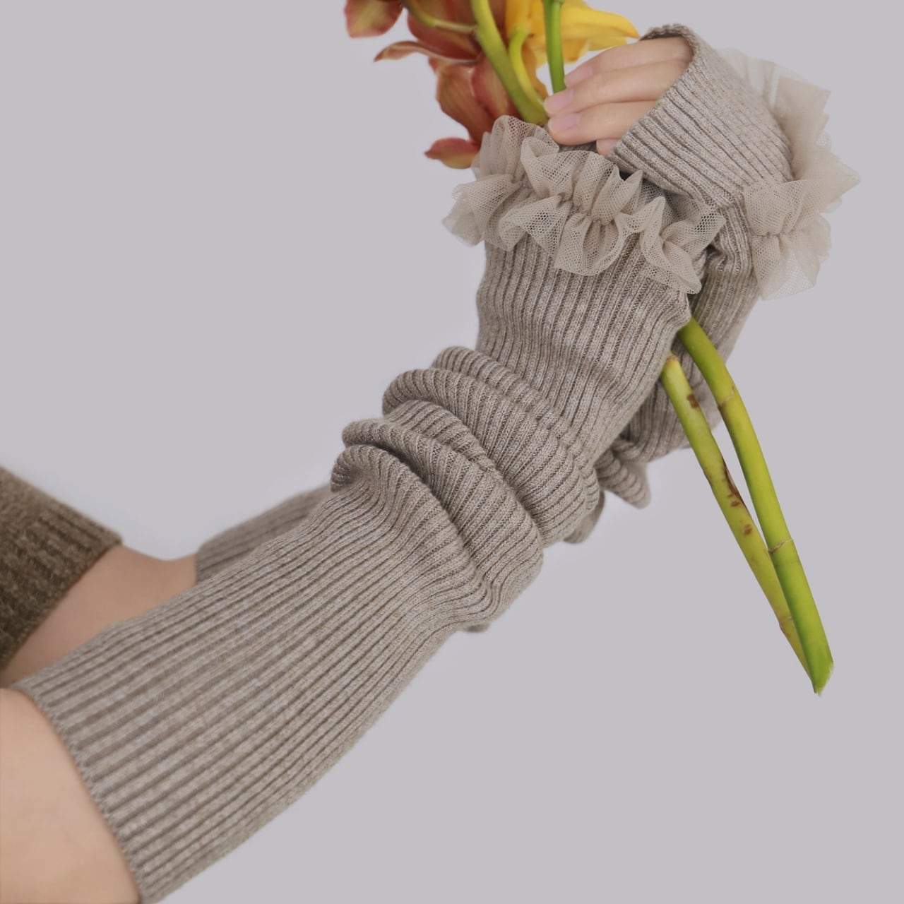 Frill Lace Knit Arm Warmers 01113