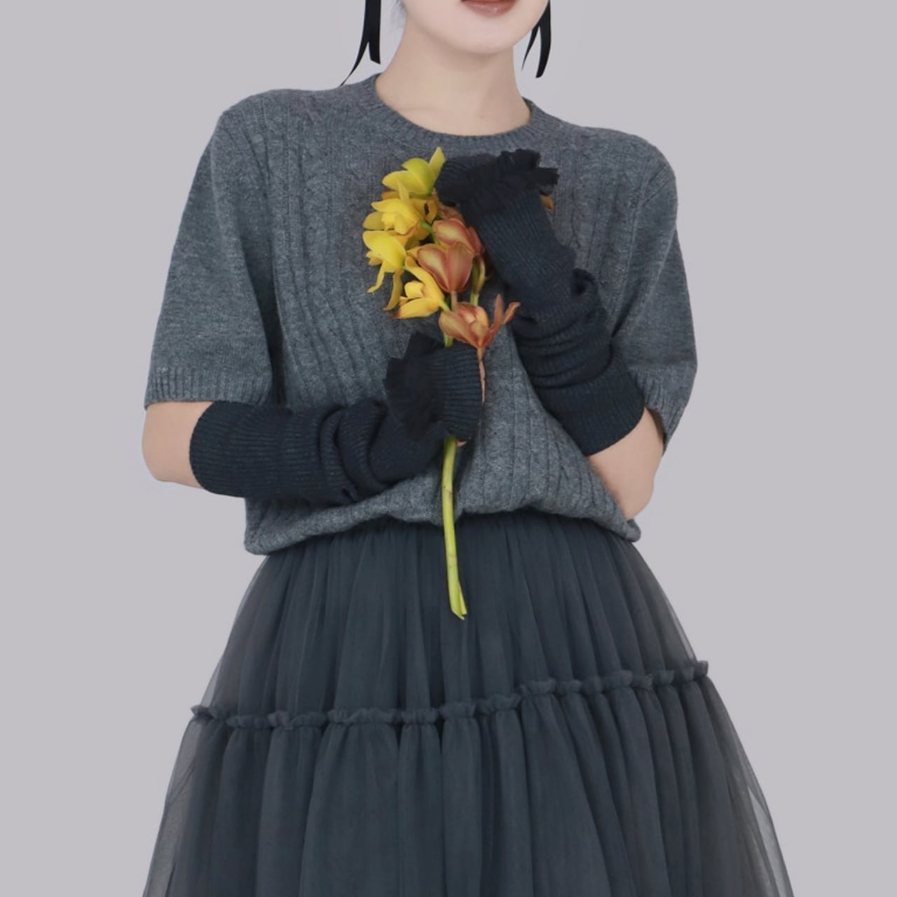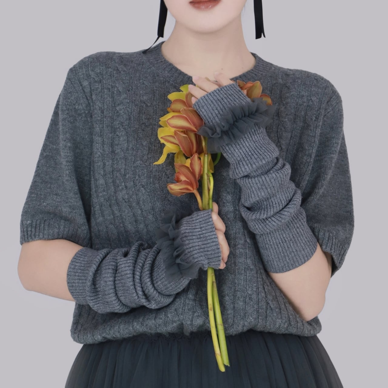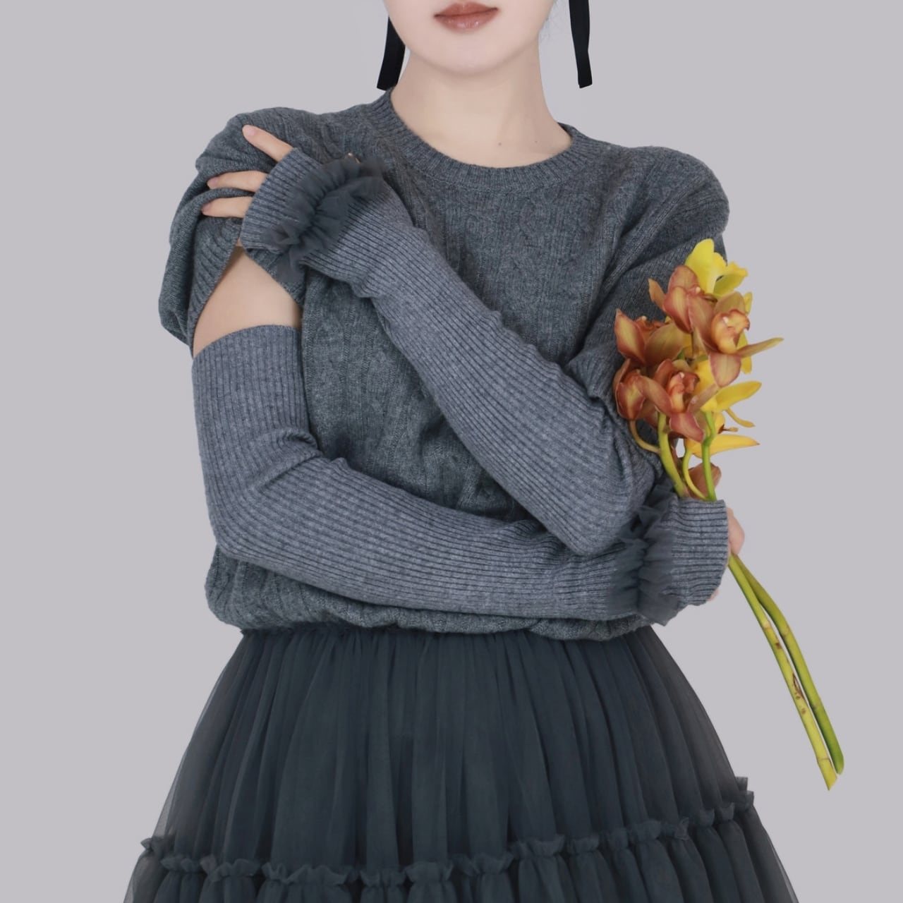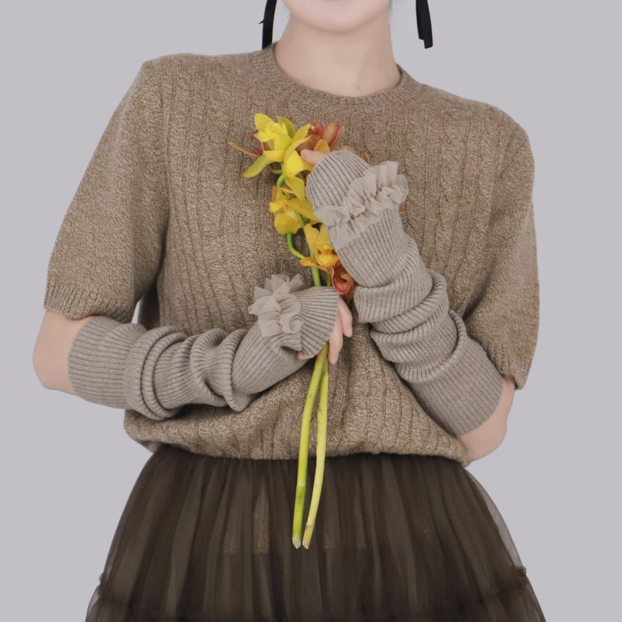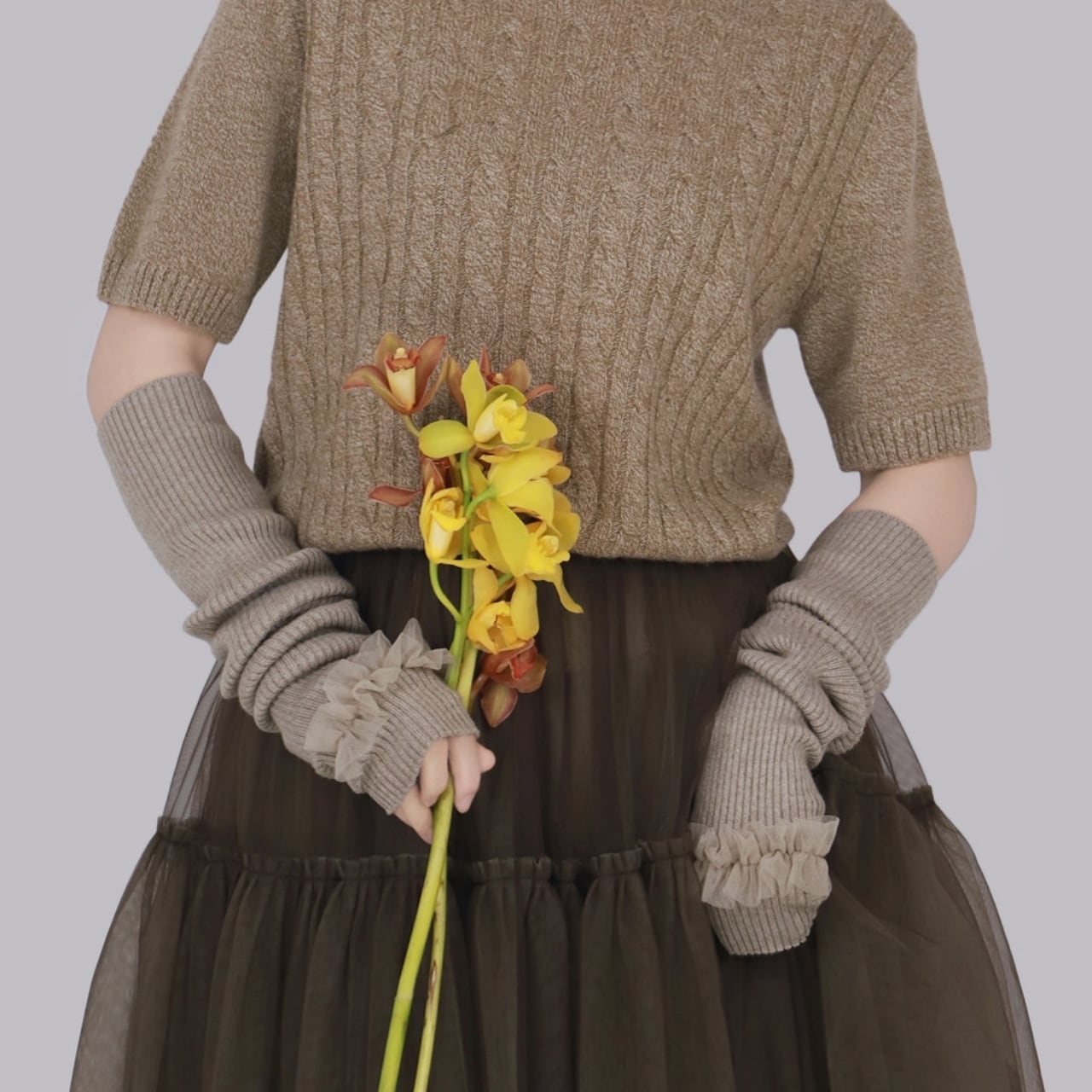 Frill Lace Knit Arm Warmers 01113