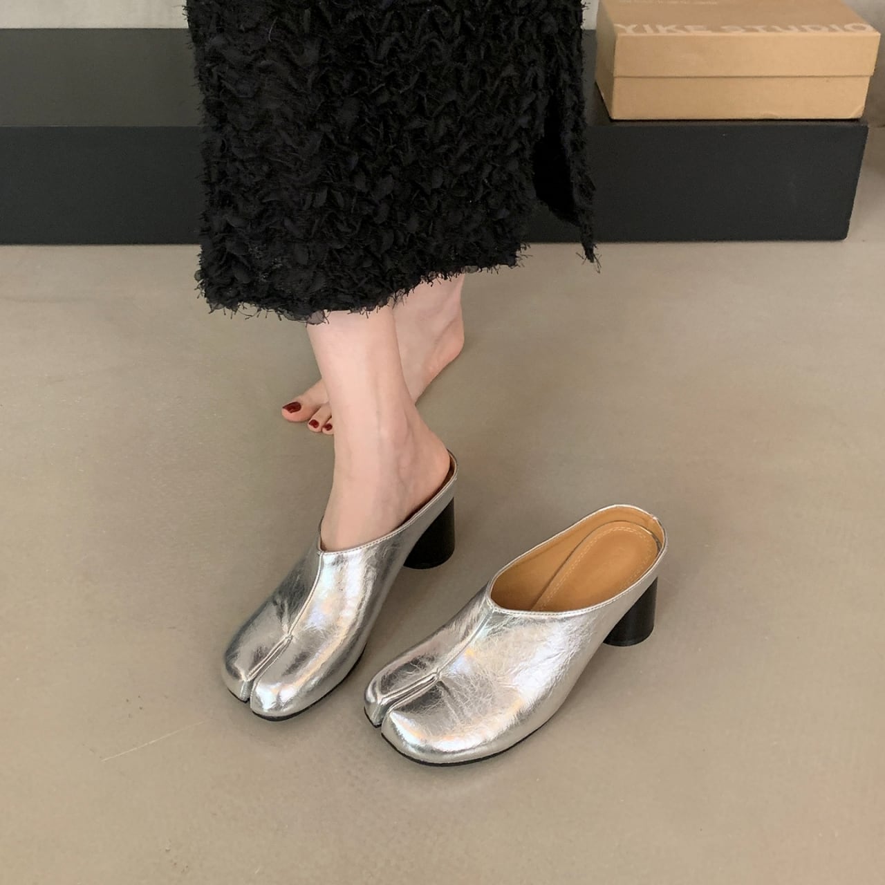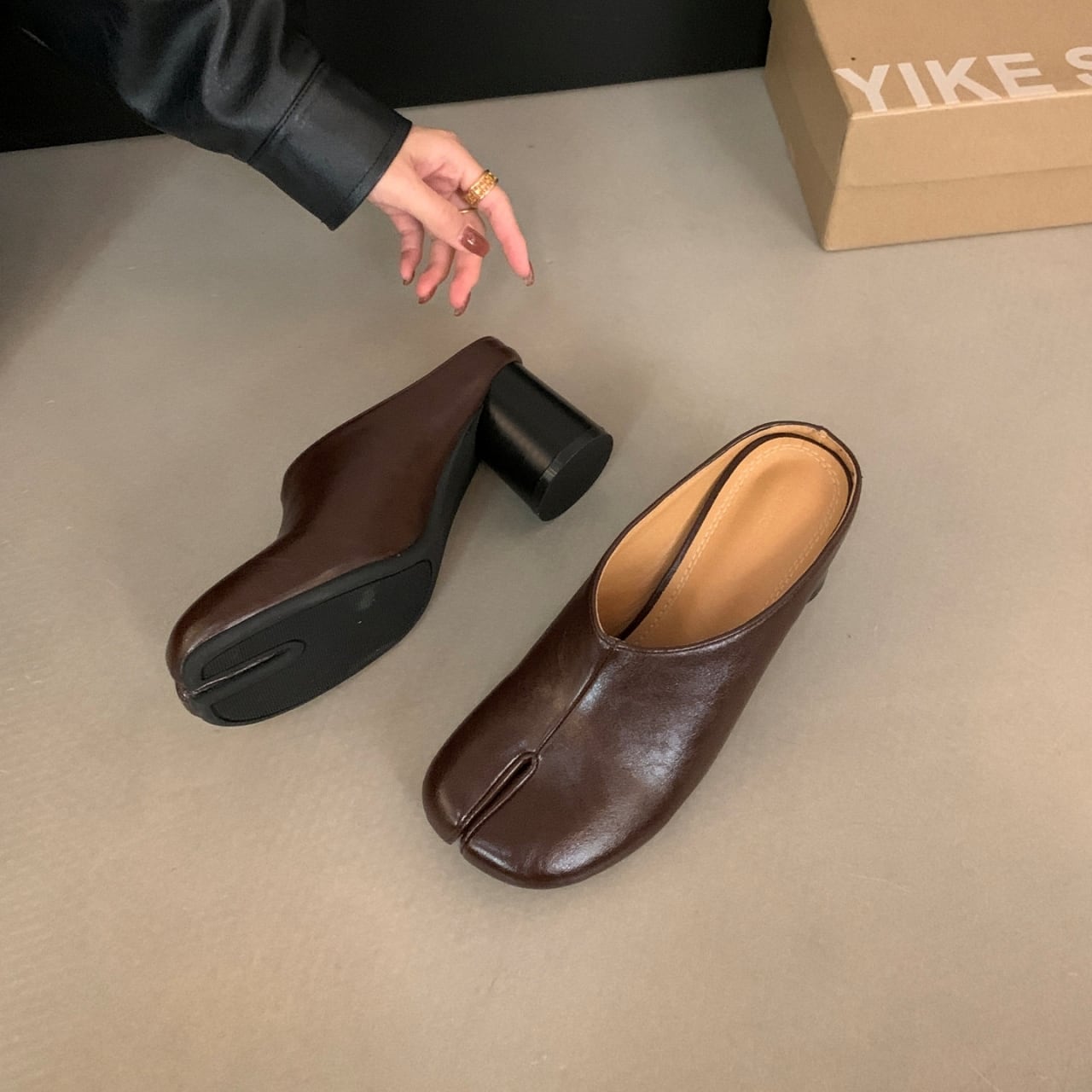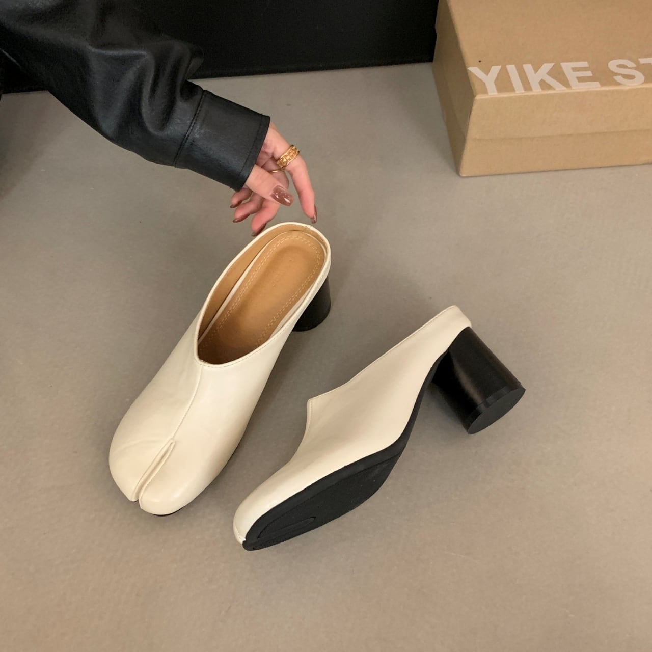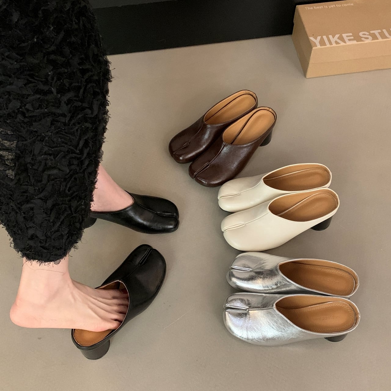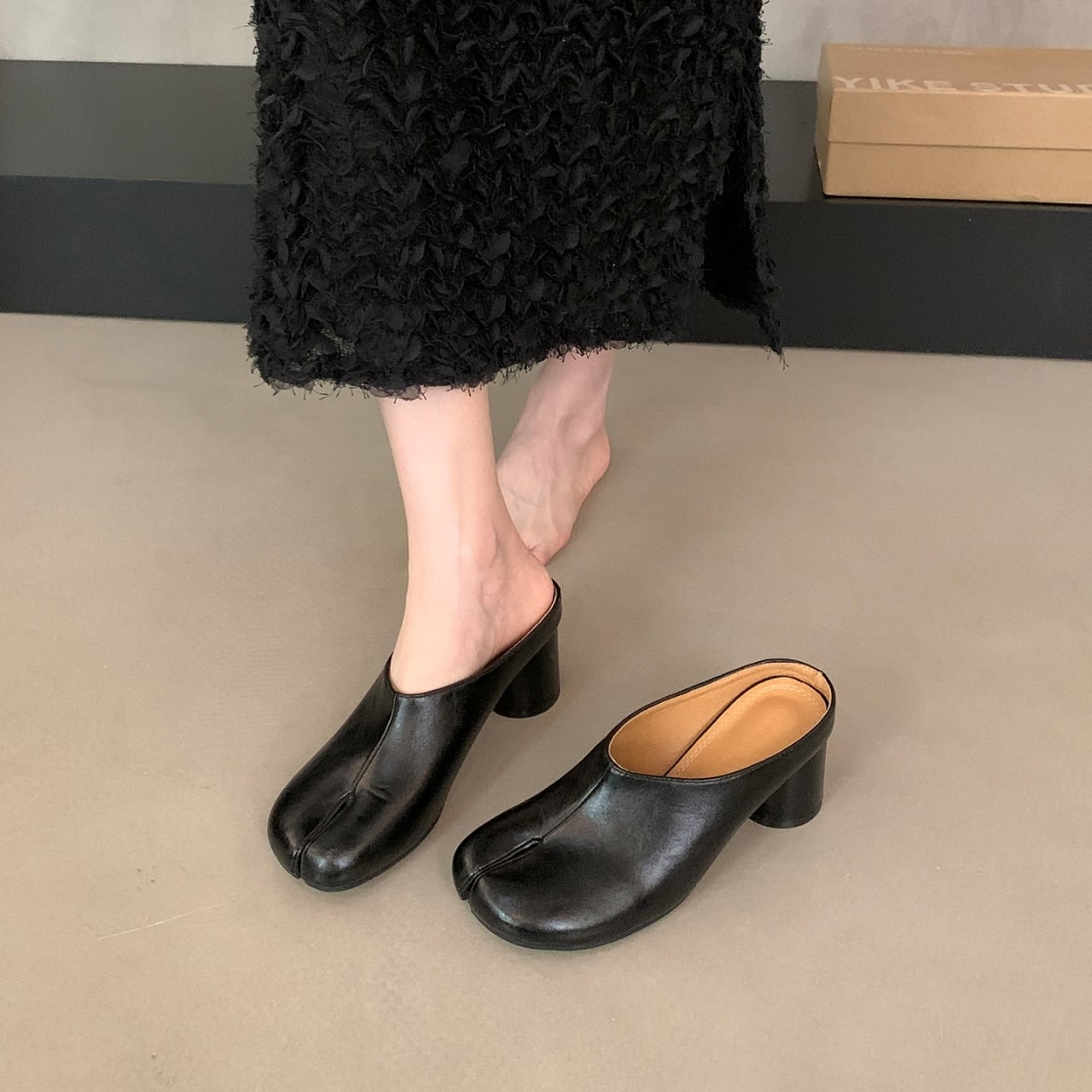 Split Toe Chunky Heel Mule 01103