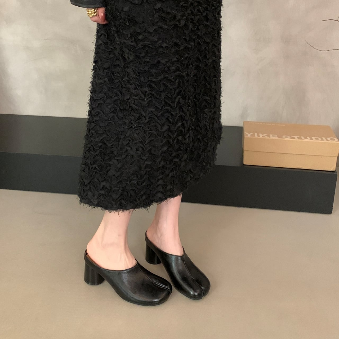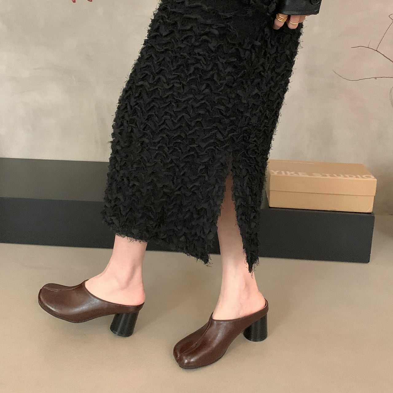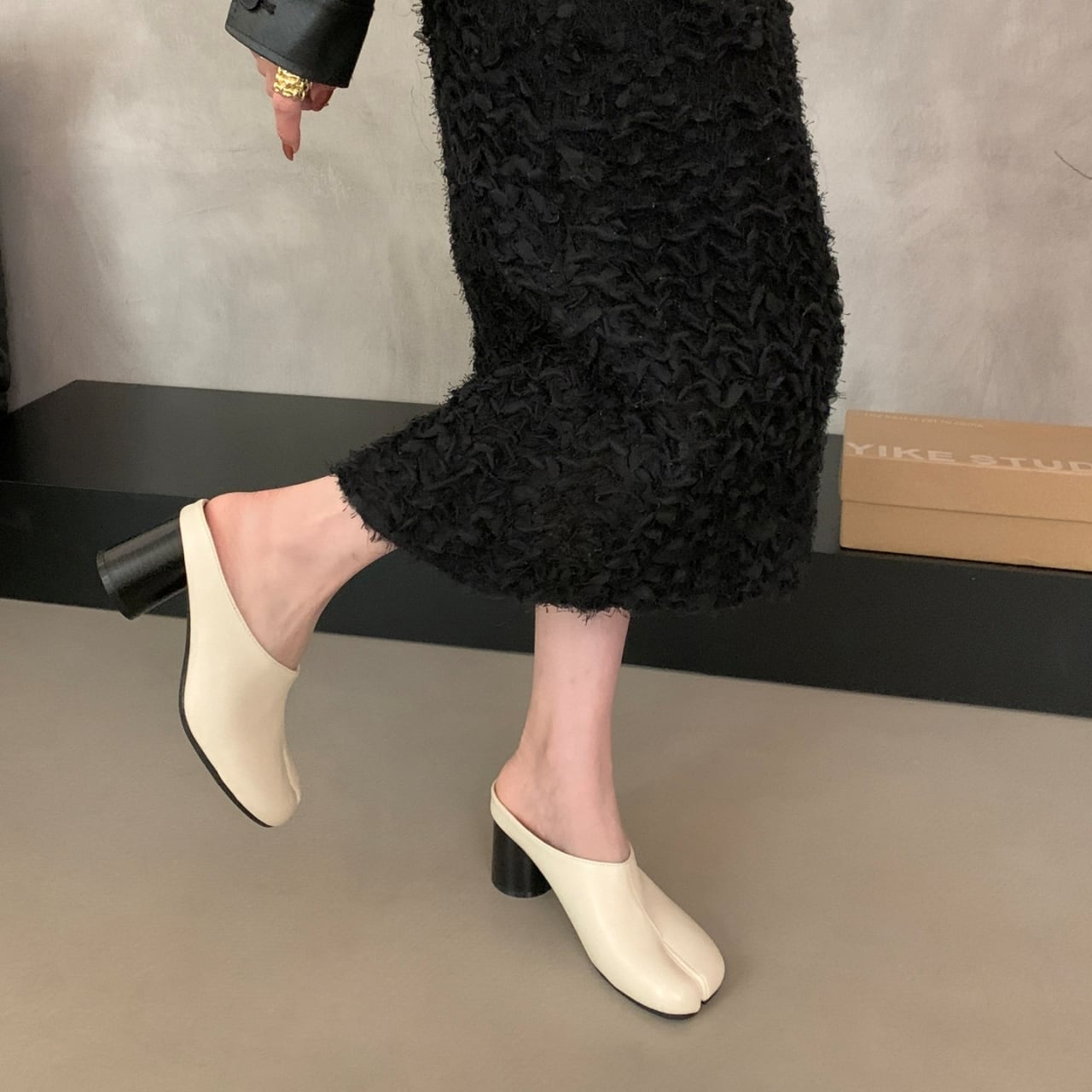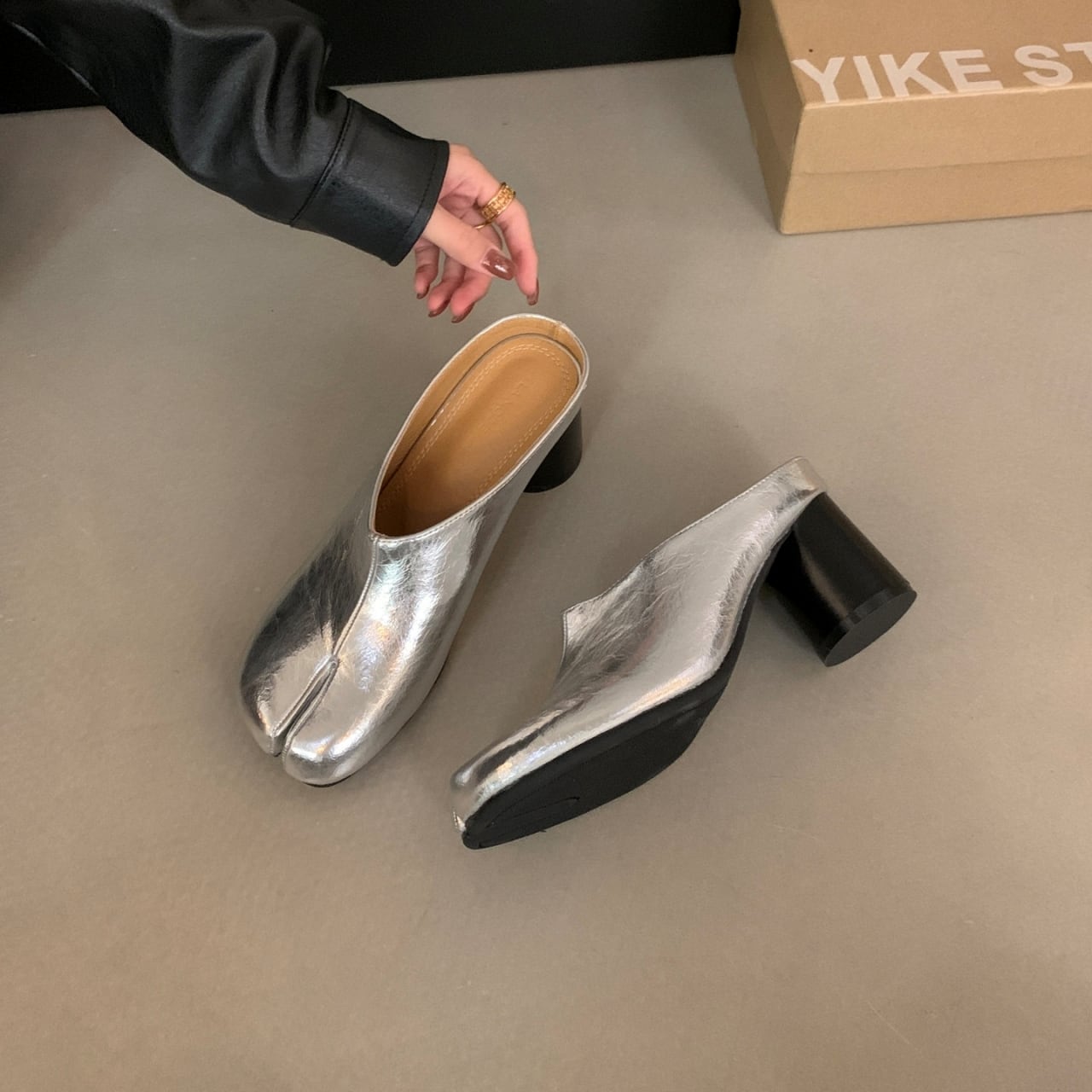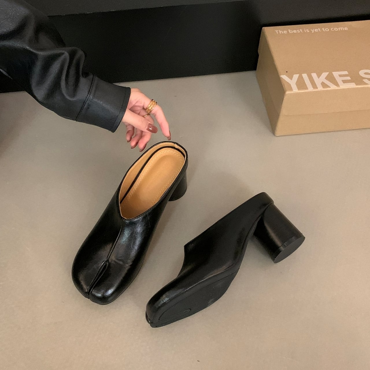 Split Toe Chunky Heel Mule 01103