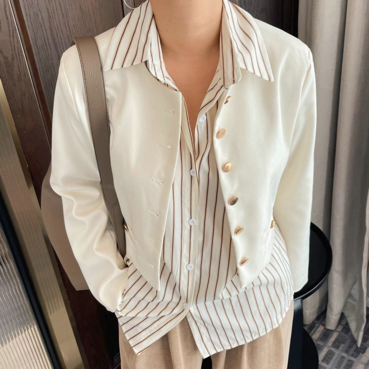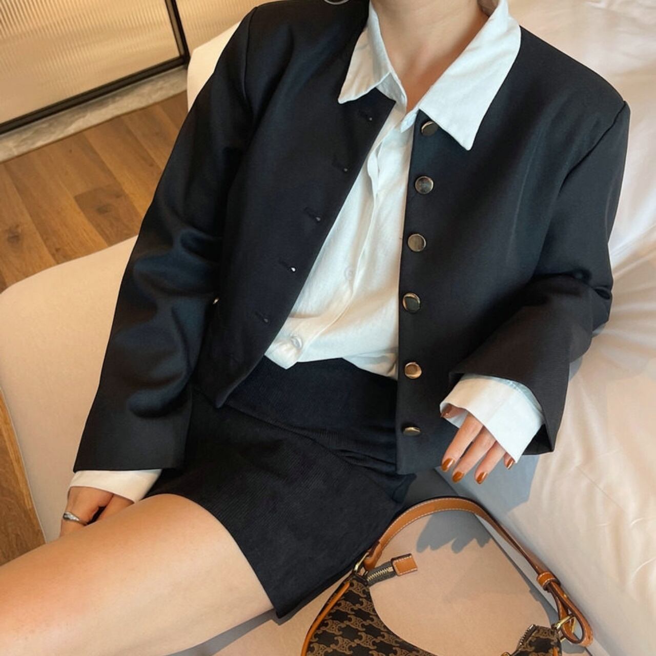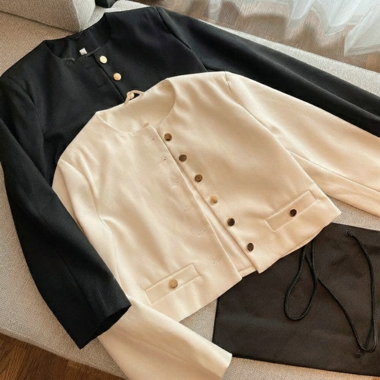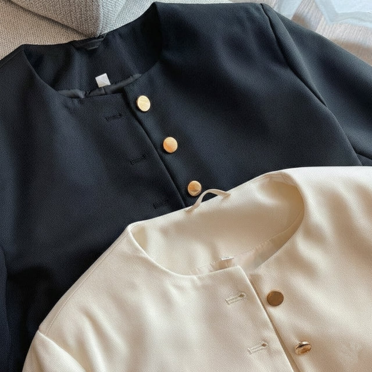 フロントボタンがアクセントとなり、上品な印象を与えます。
