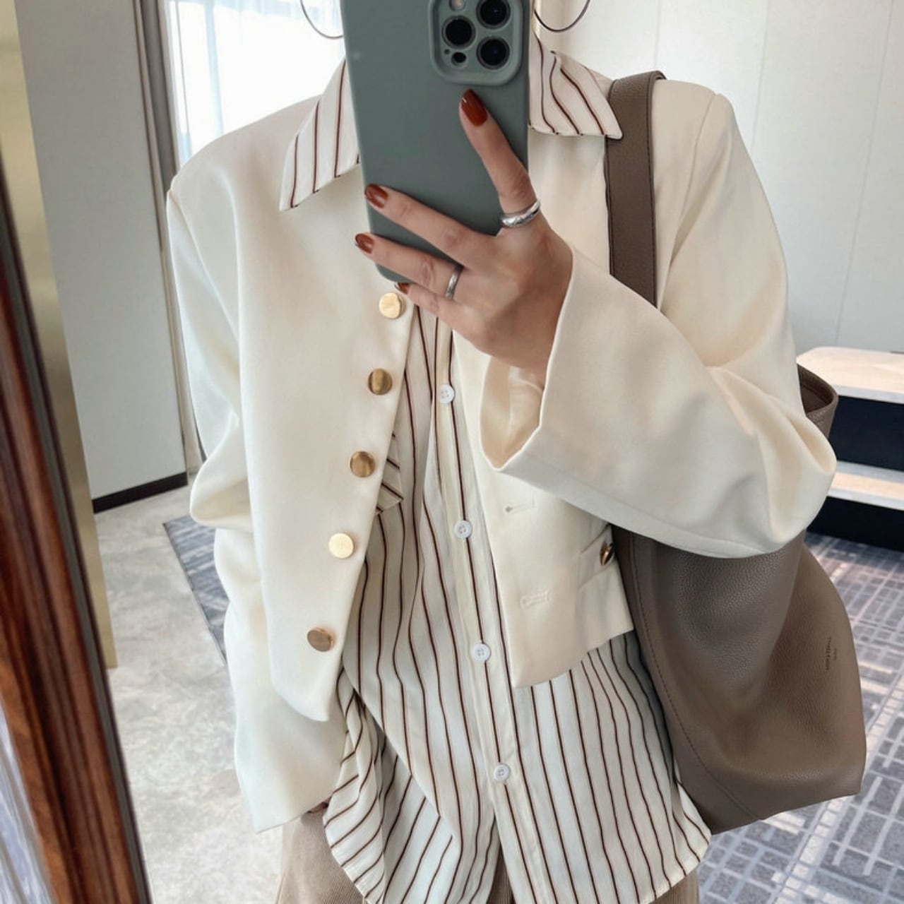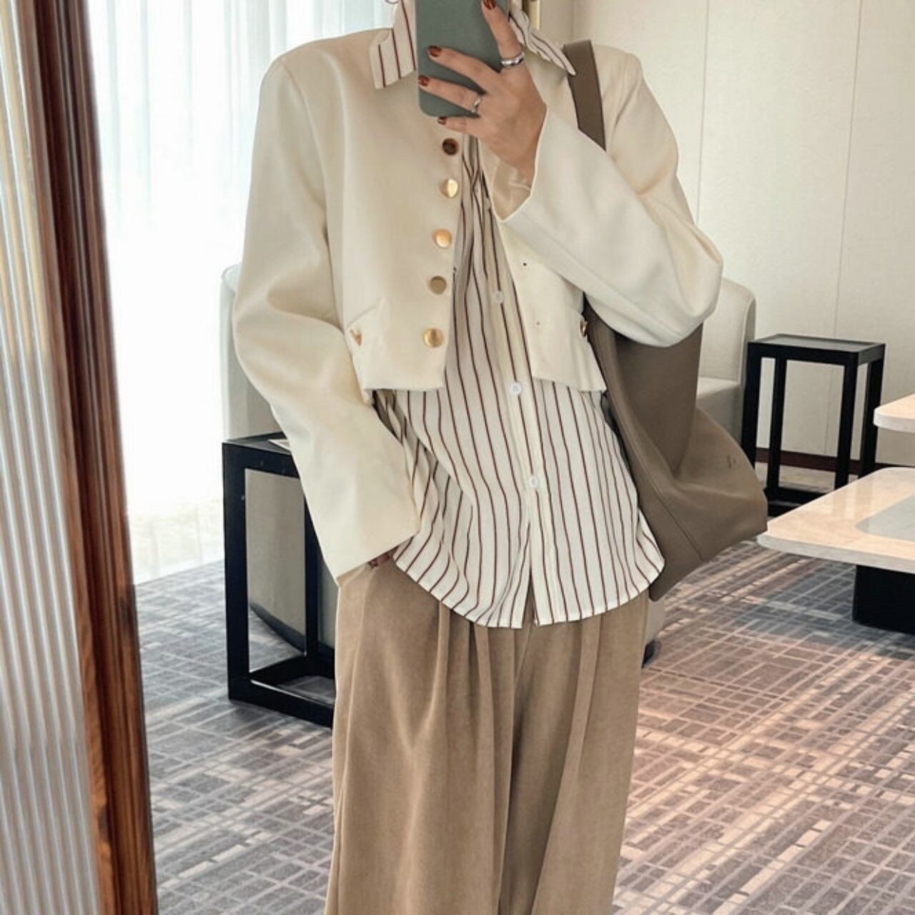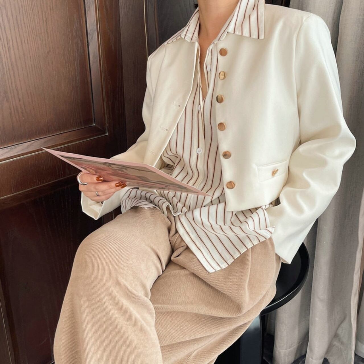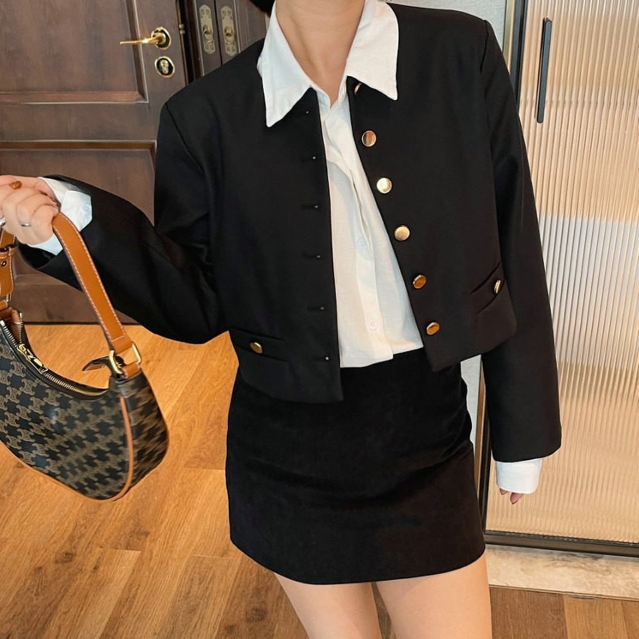フロントボタンがアクセントとなり、上品な印象を与えます。