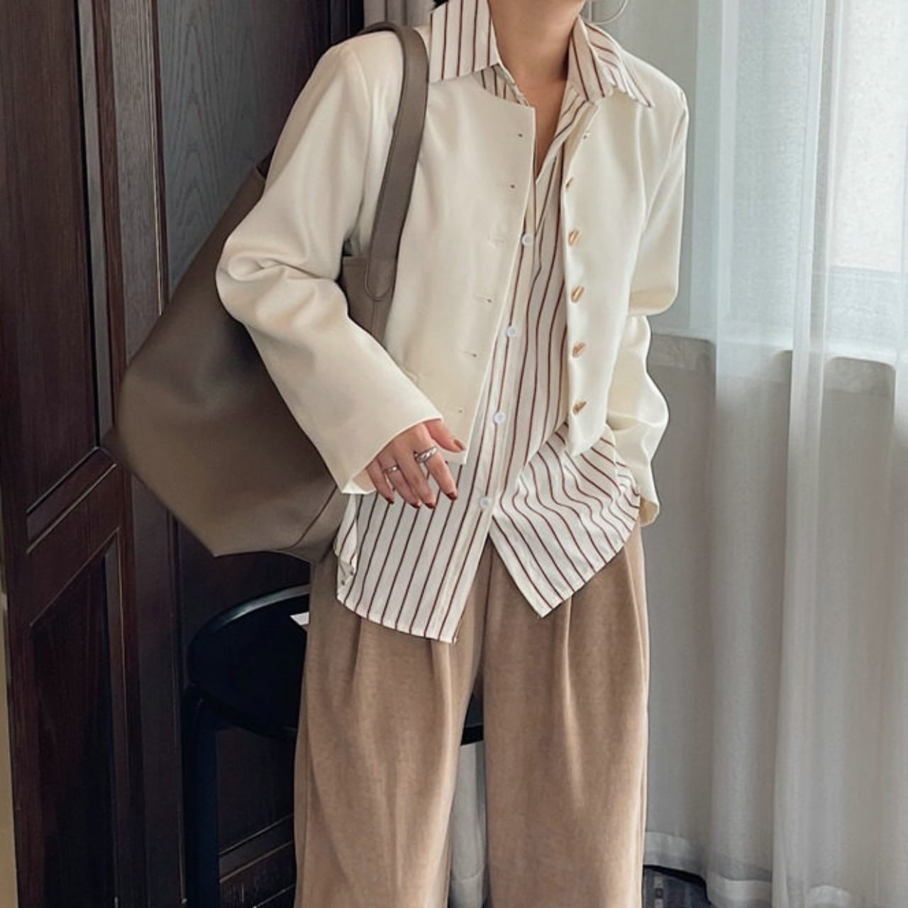 オフィススタイルからカジュアルまで、幅広いシーンで活躍する一着です。