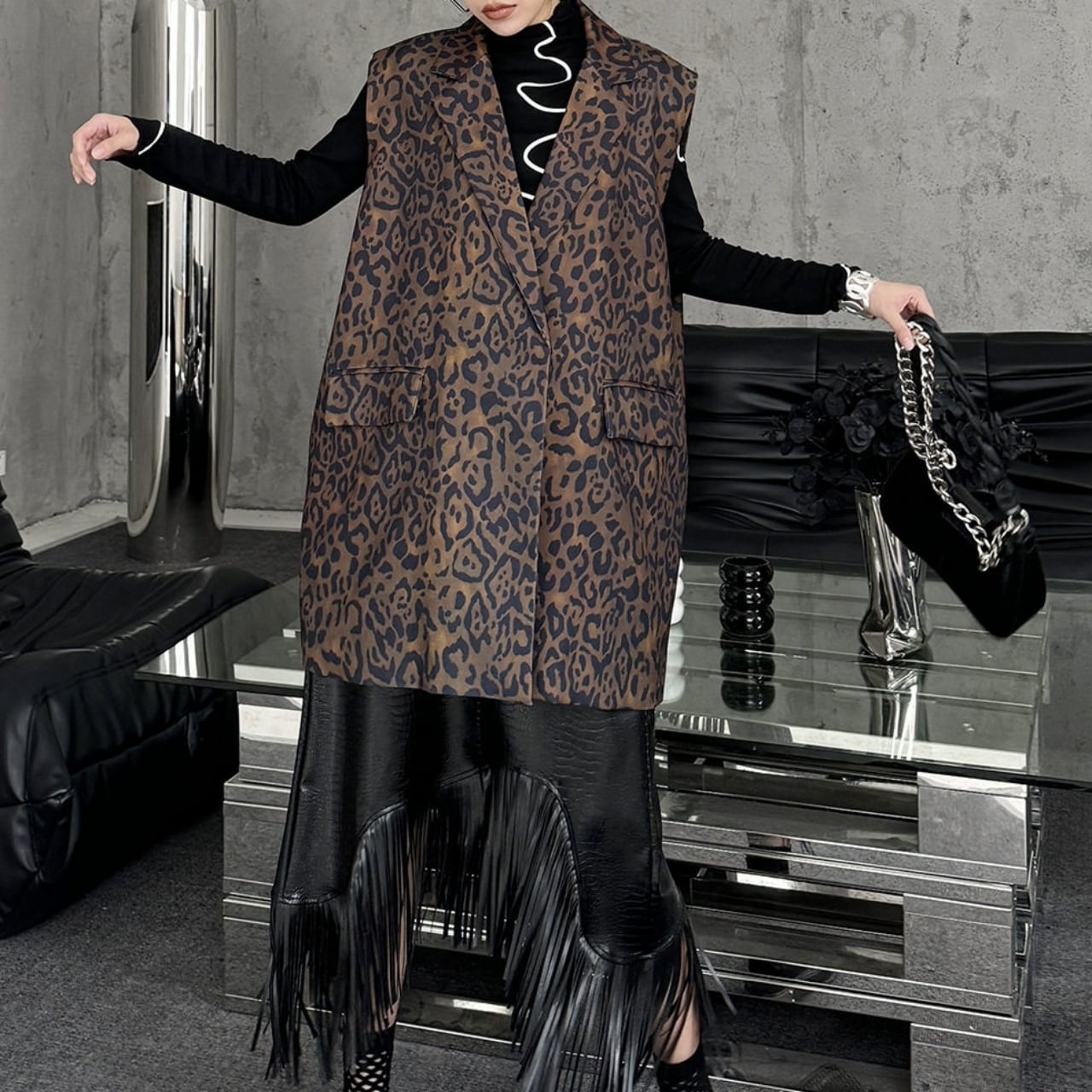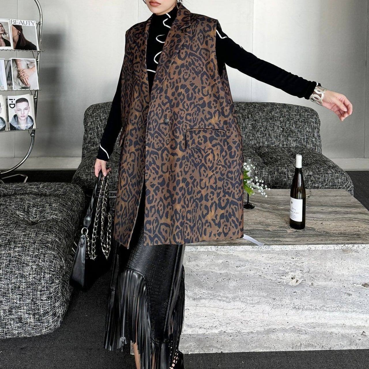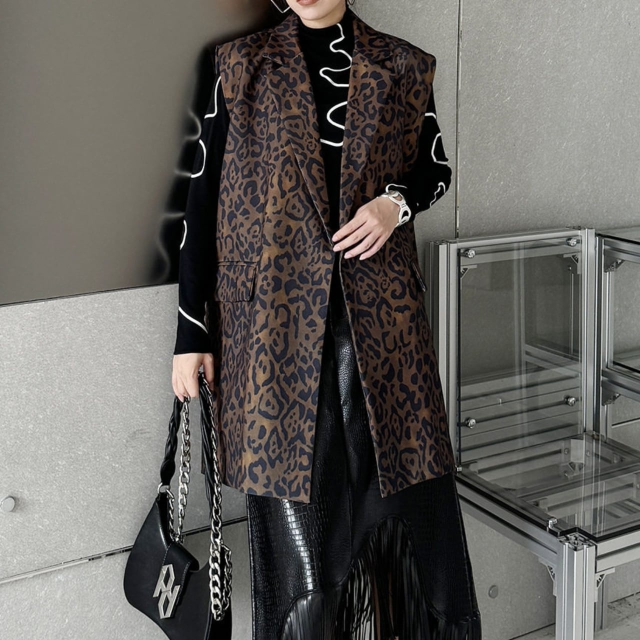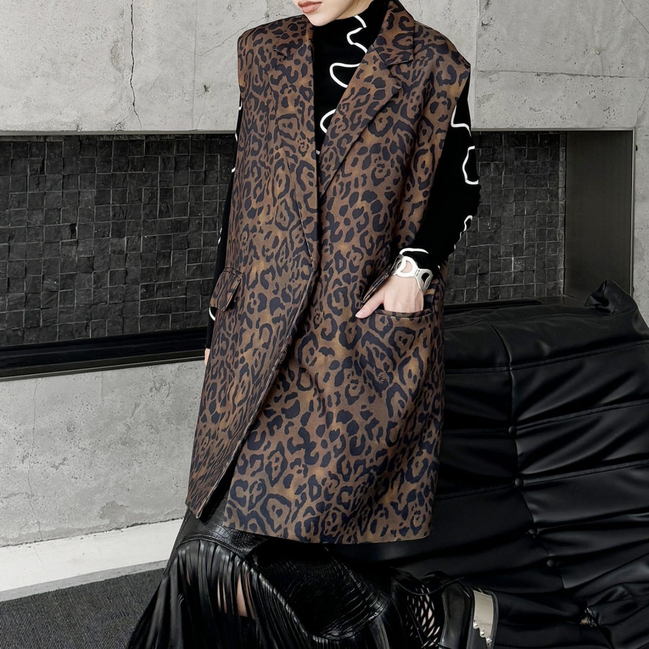 Animal Print Sleeveless Jacket 01139