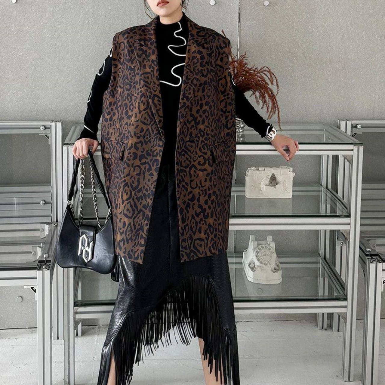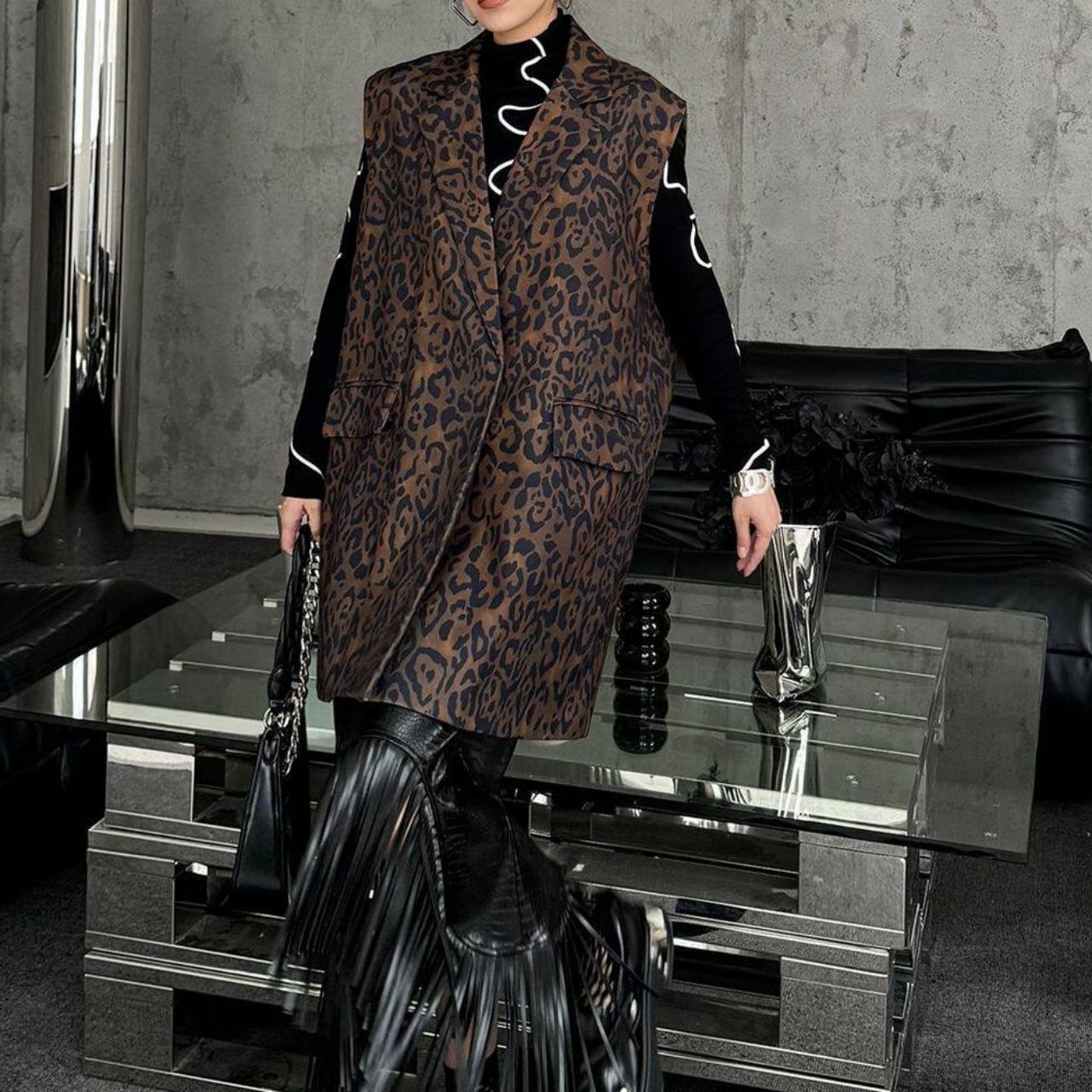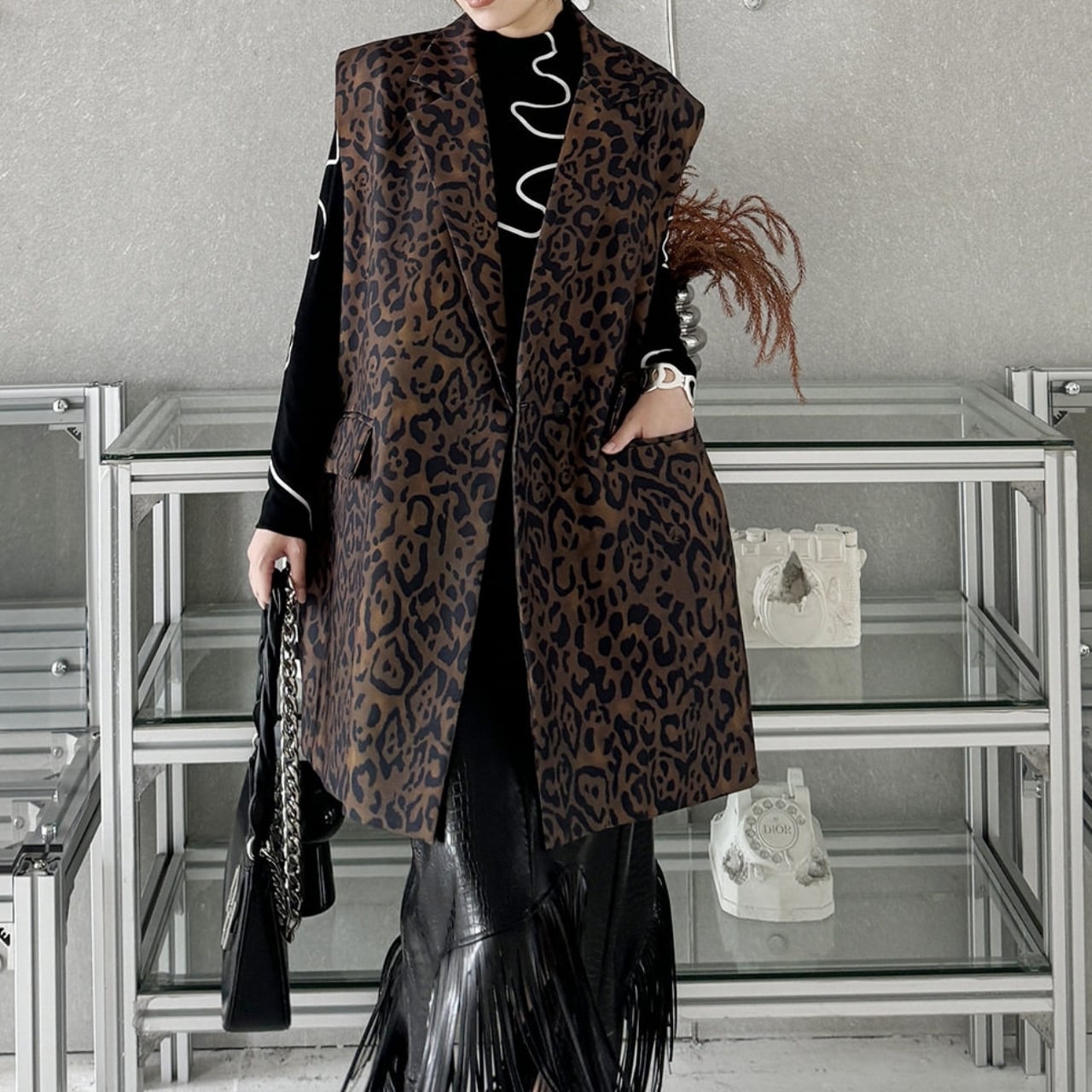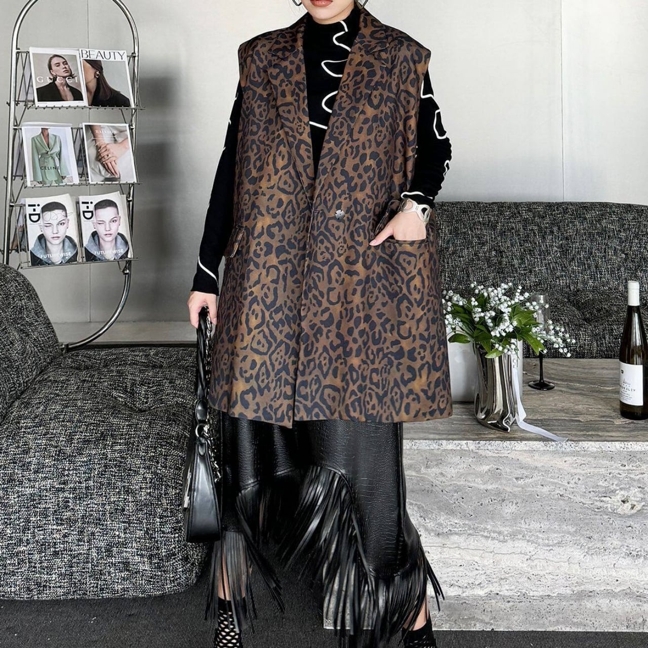 Animal Print Sleeveless Jacket 01139