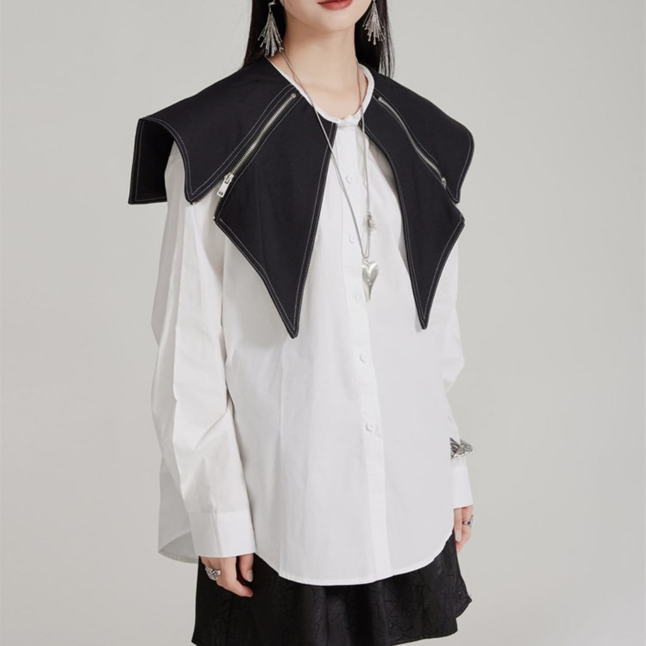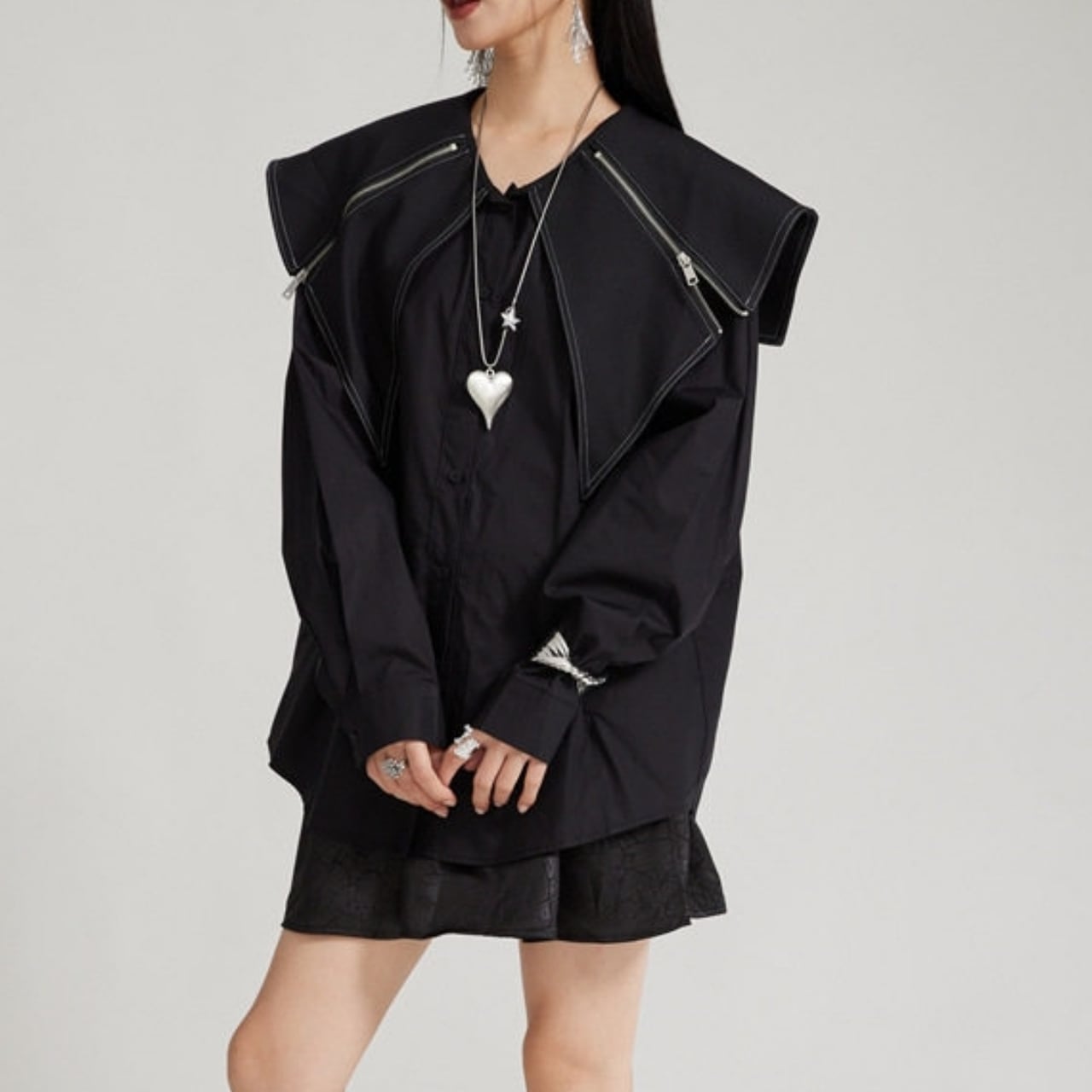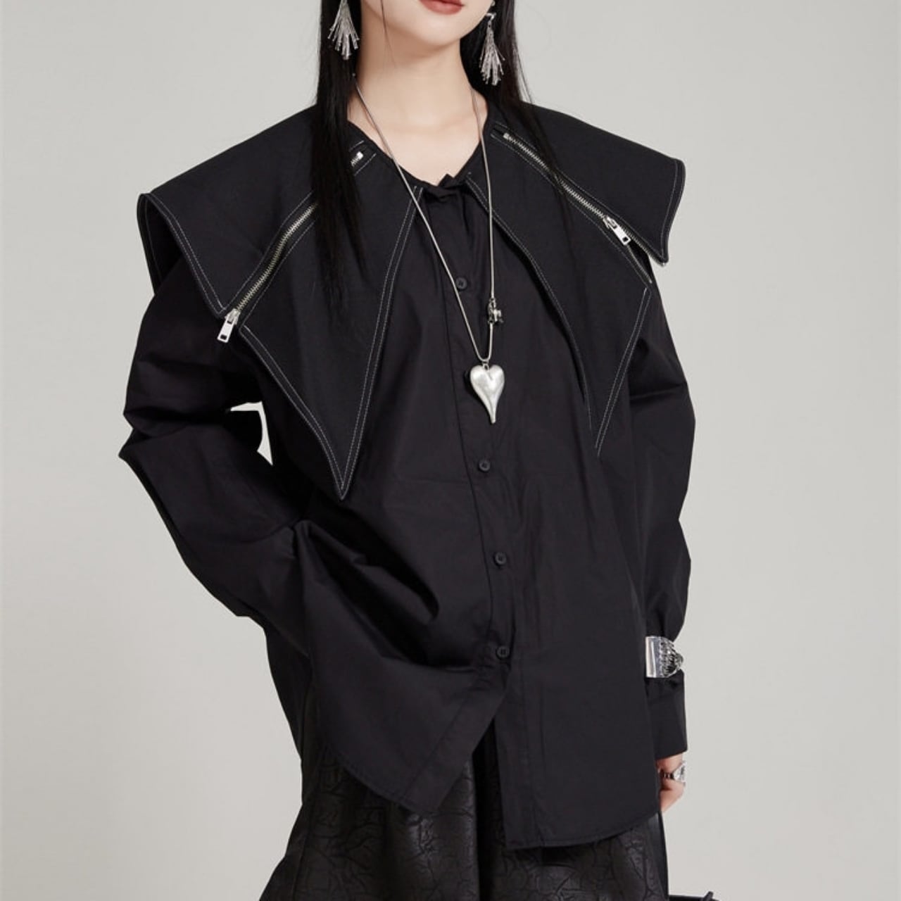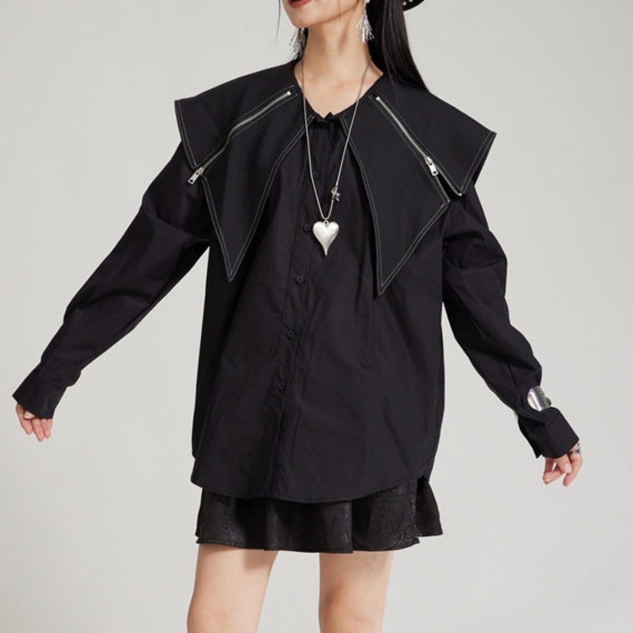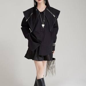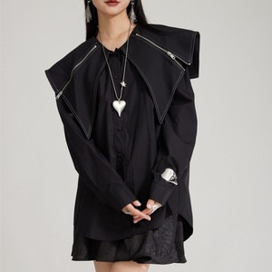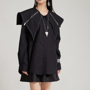 Zip Detail Shirt Collar Long Sleeve Shirt 01124