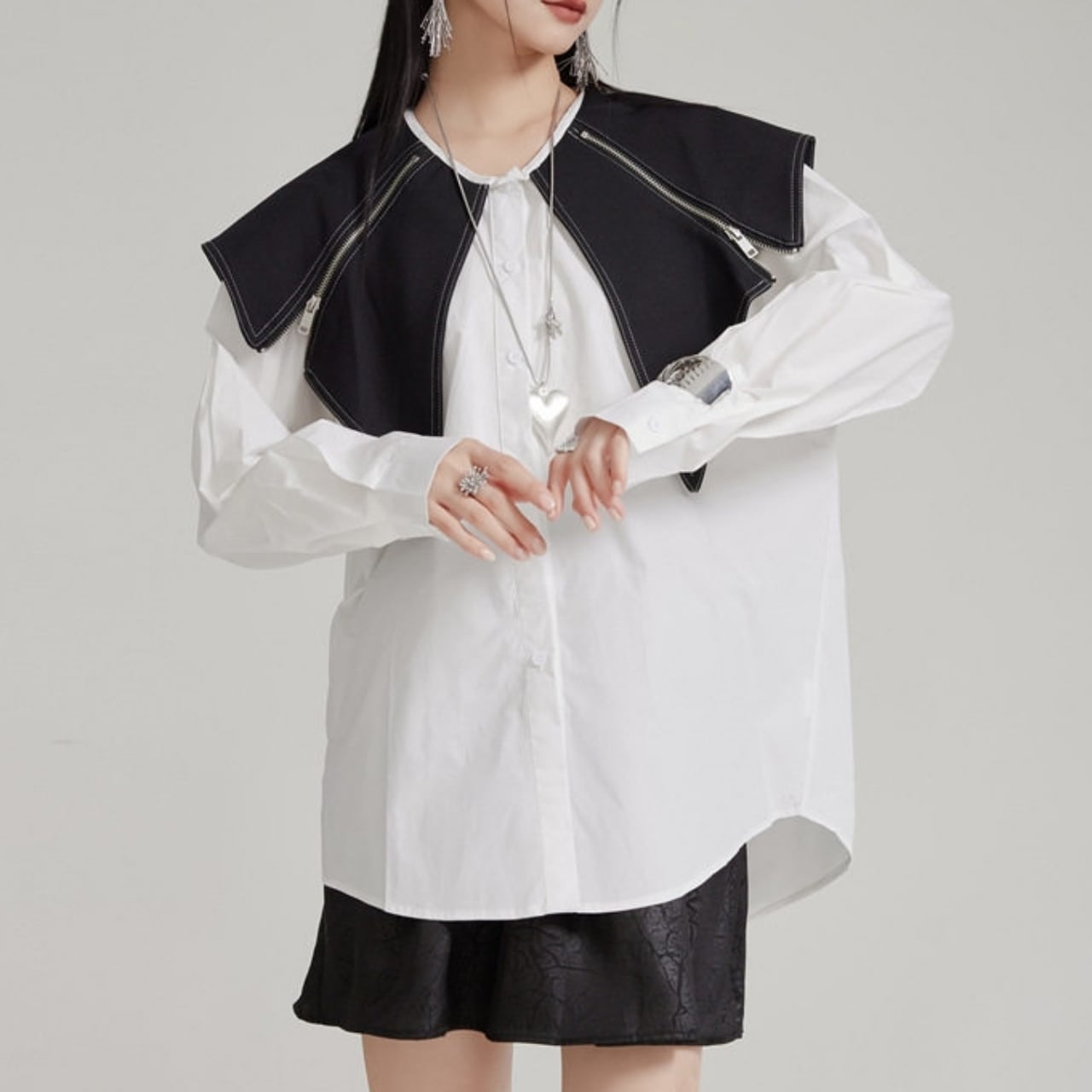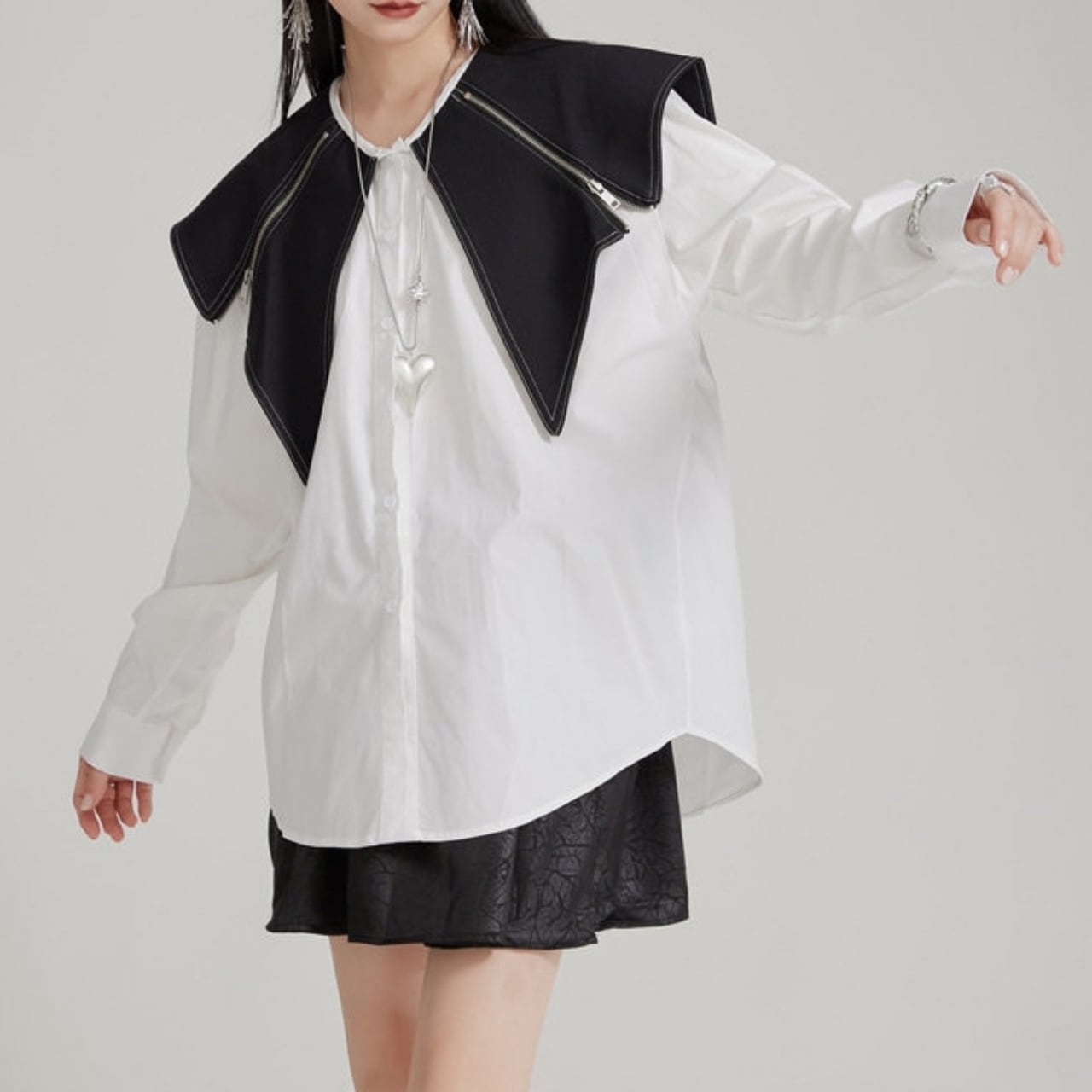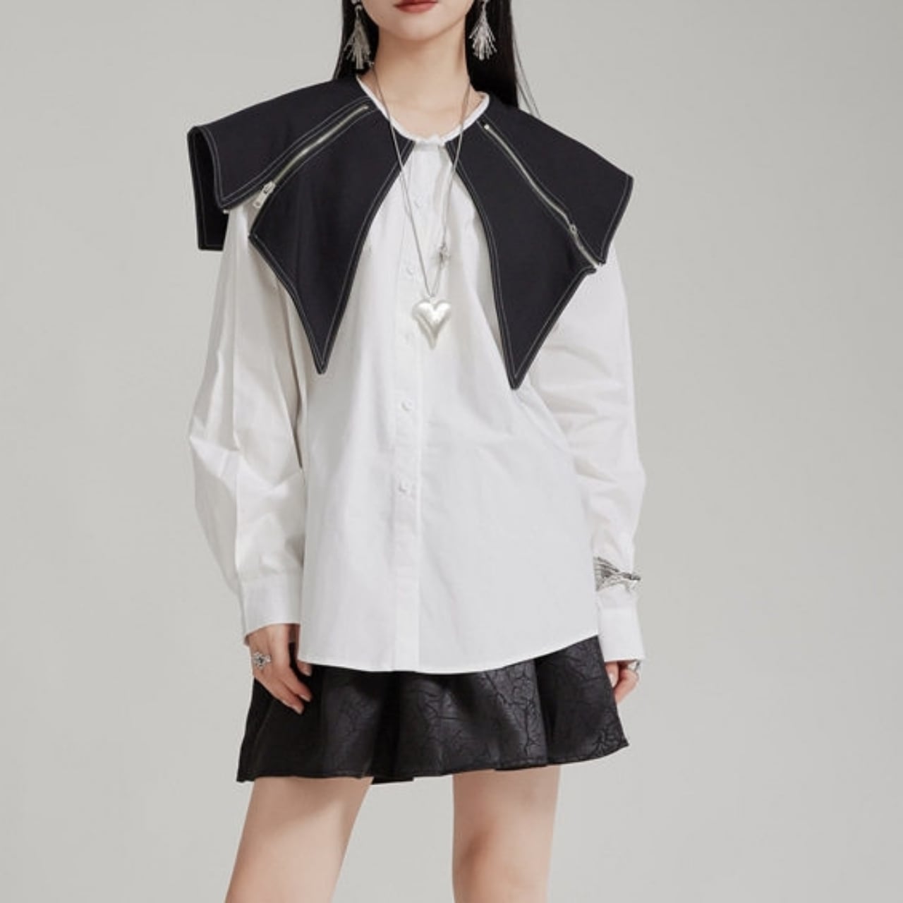 Zip Detail Shirt Collar Long Sleeve Shirt 01124