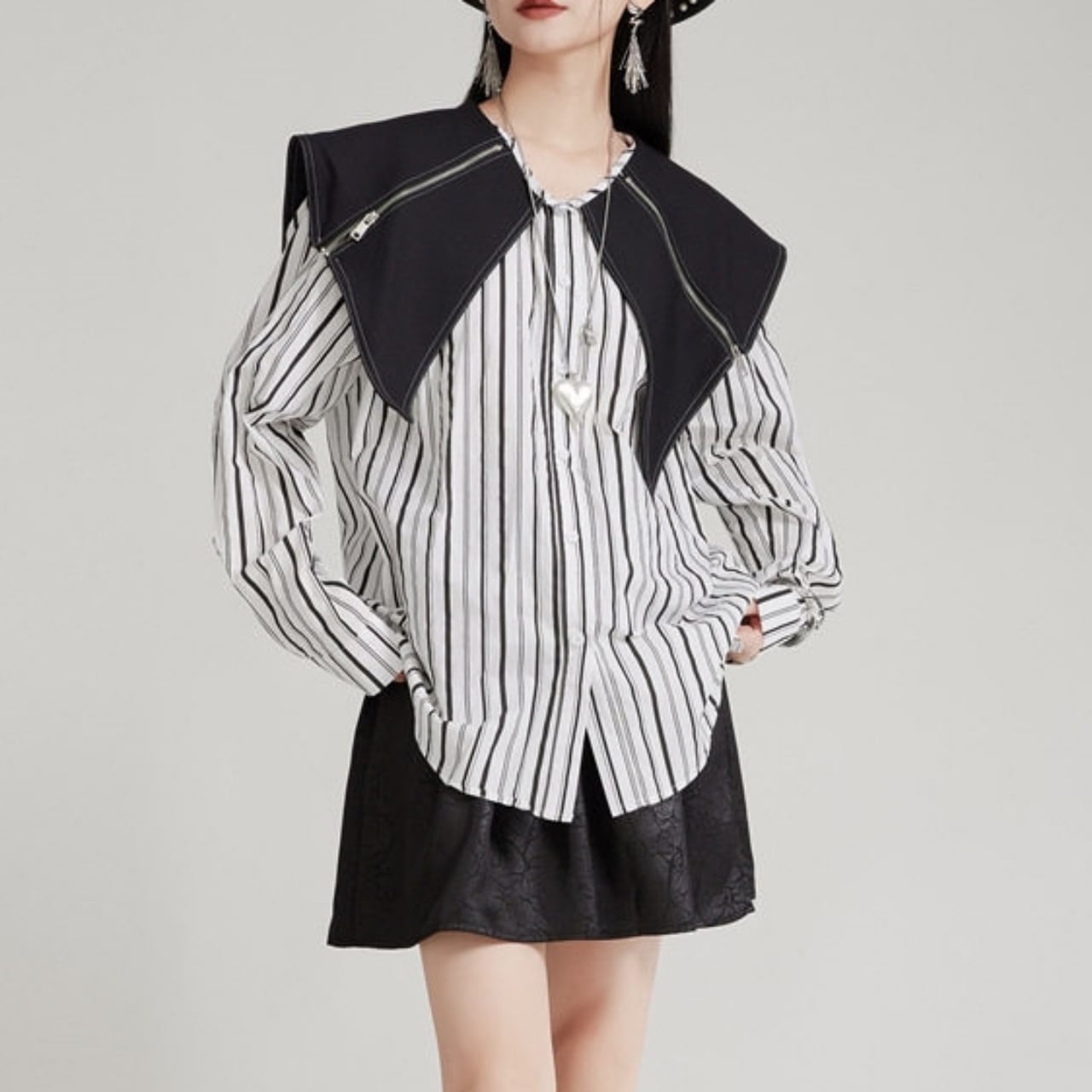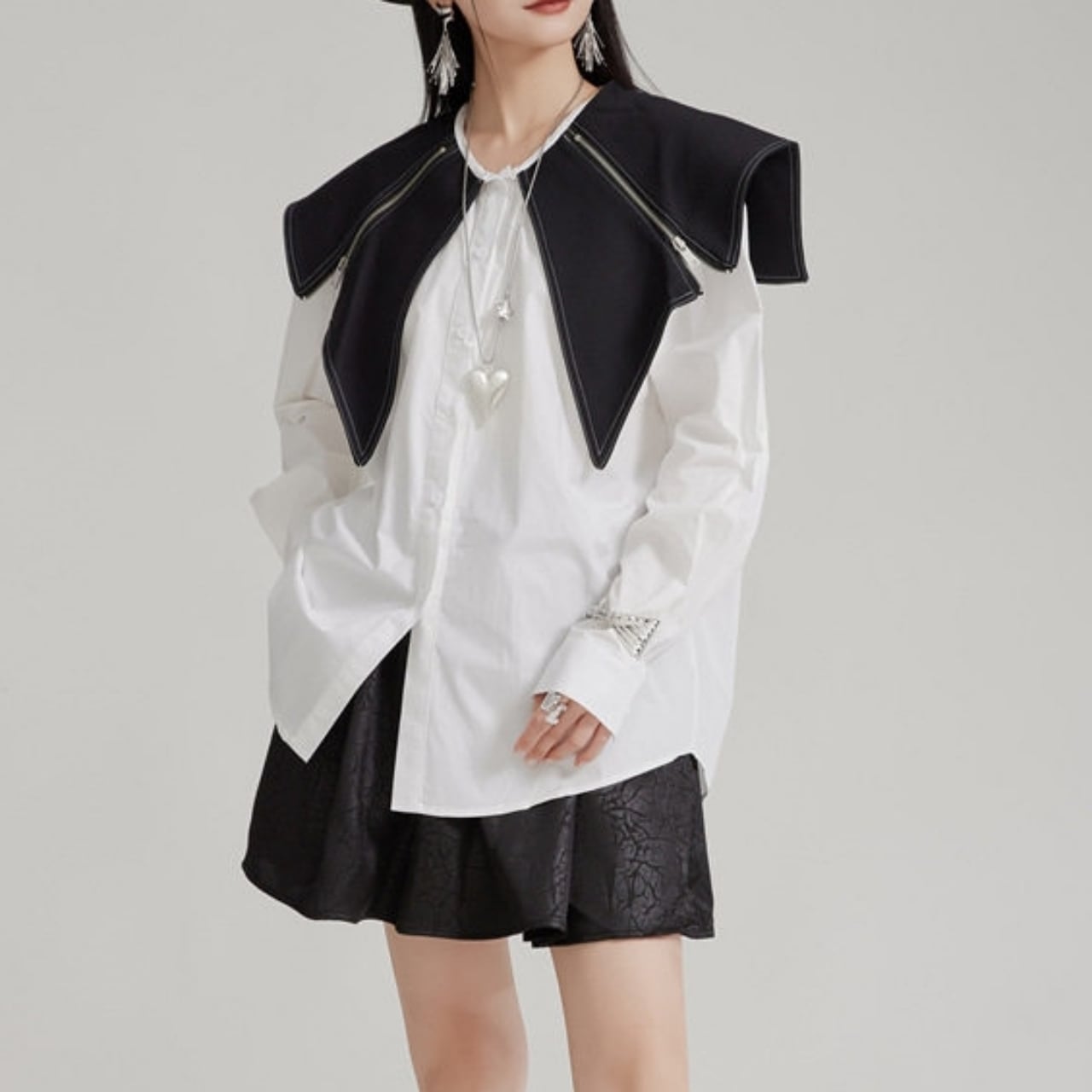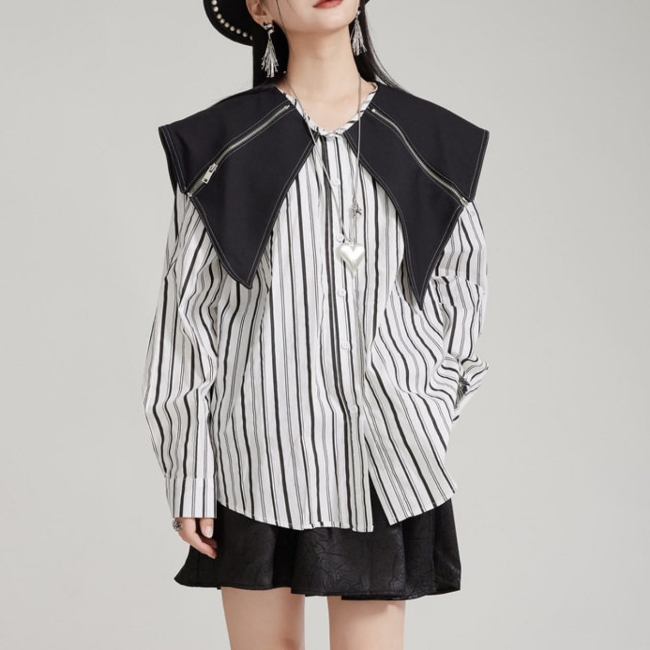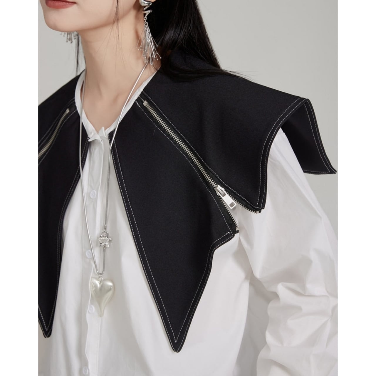 Zip Detail Shirt Collar Long Sleeve Shirt 01124