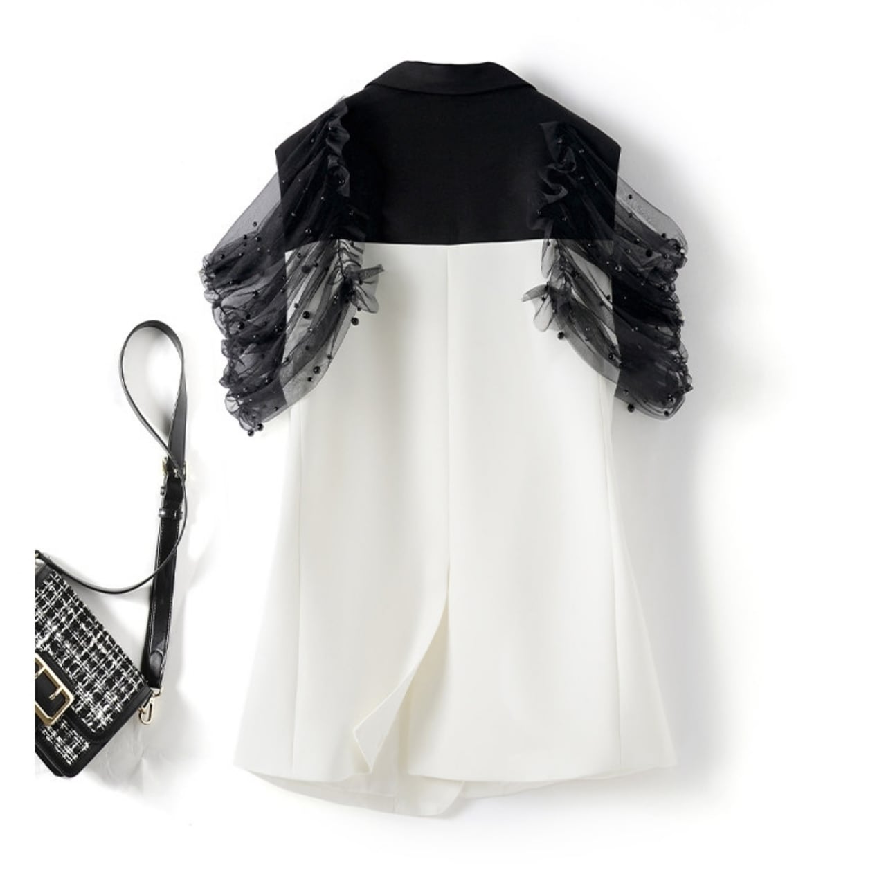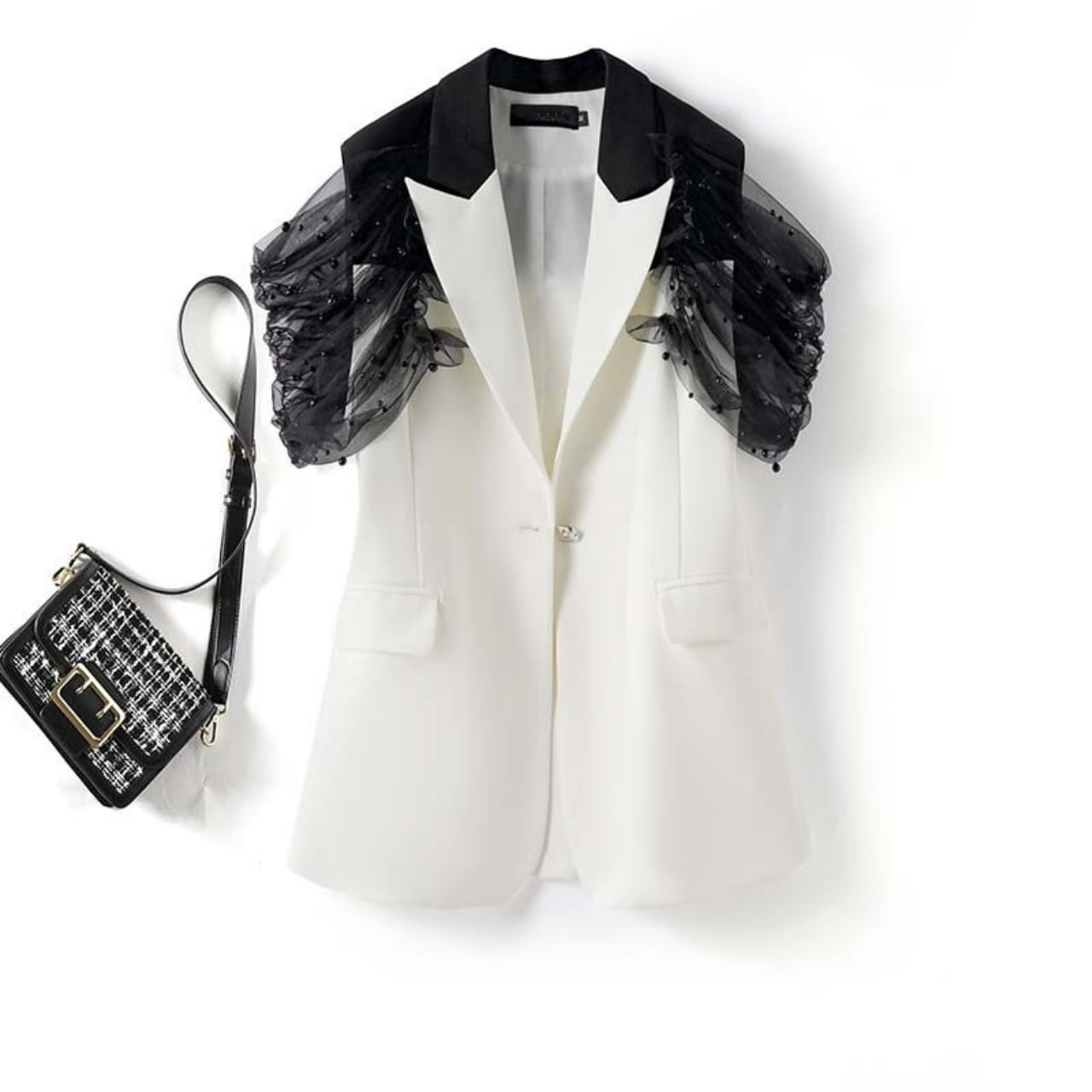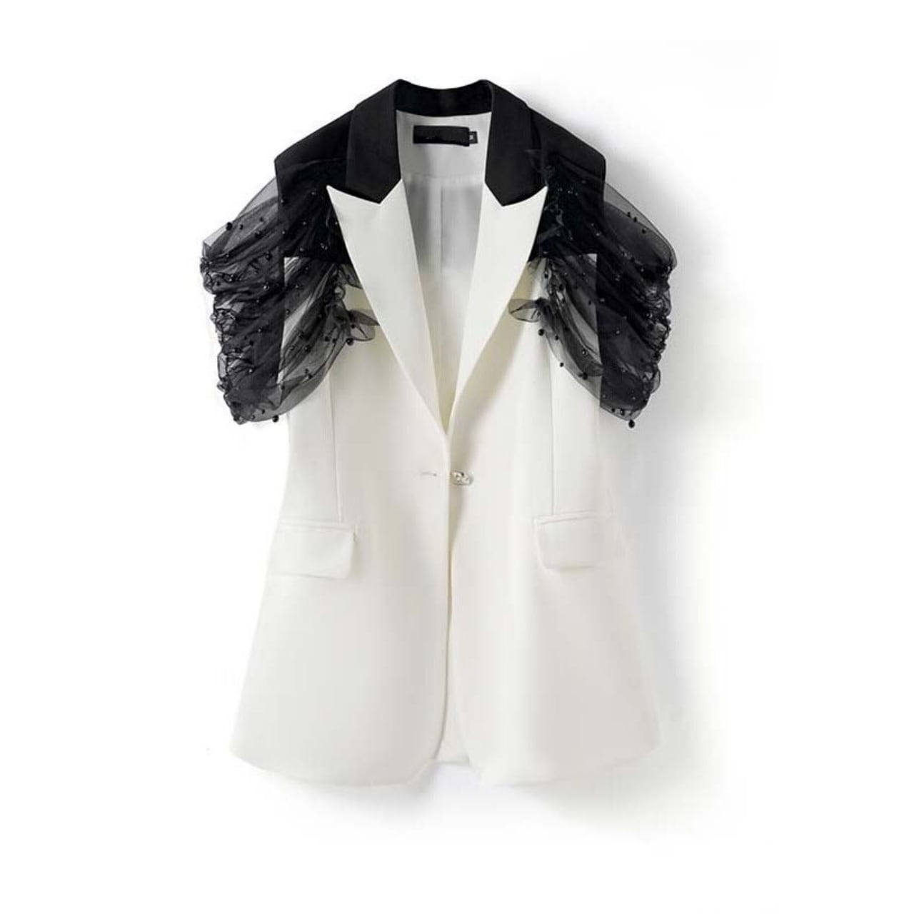 Single-Breasted Sheer Sleeve Vest 01164