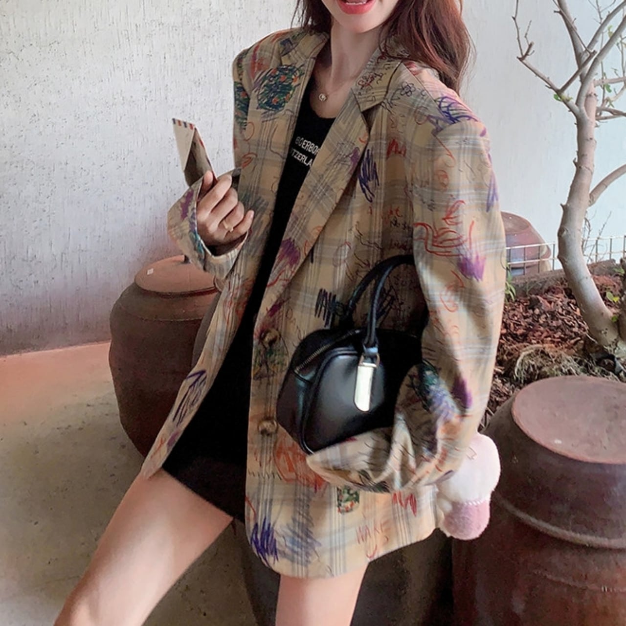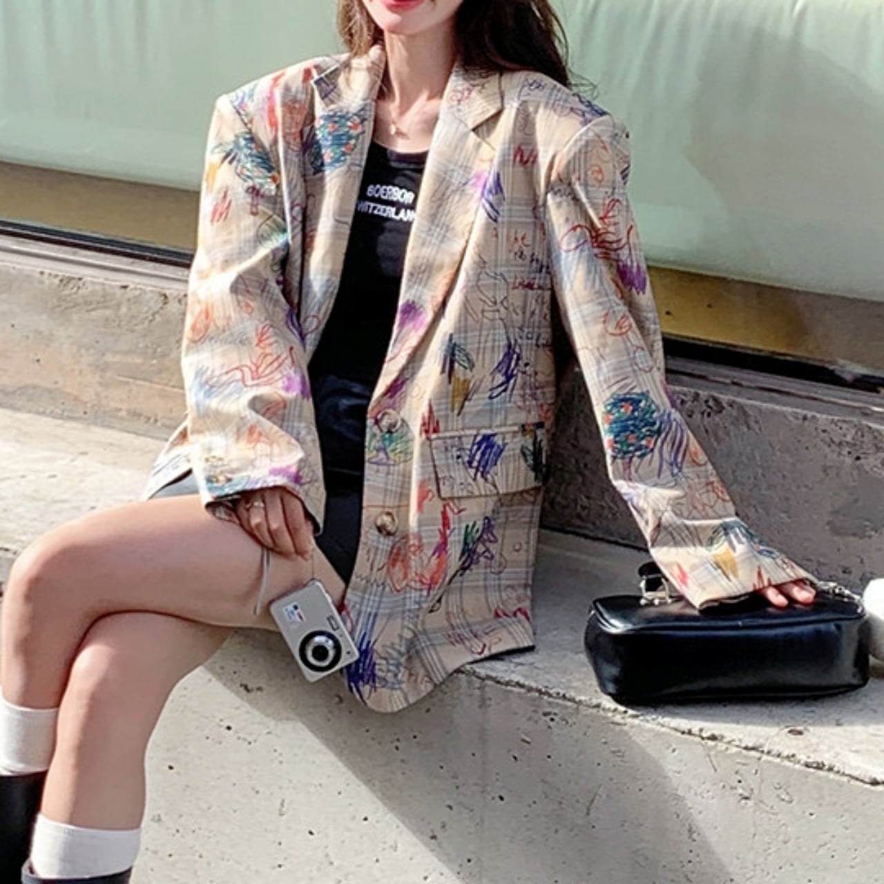 Graphic-print oversized jacket 01163