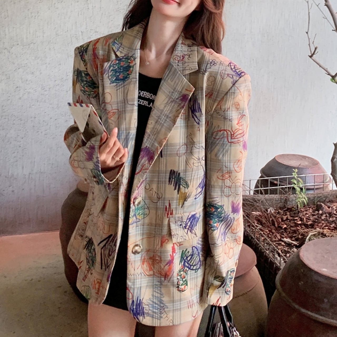 シンプルなコーディネートに羽織るだけで、個性をプラスできます。