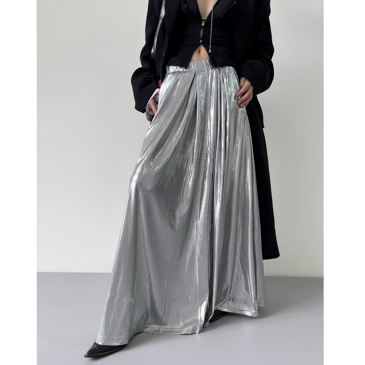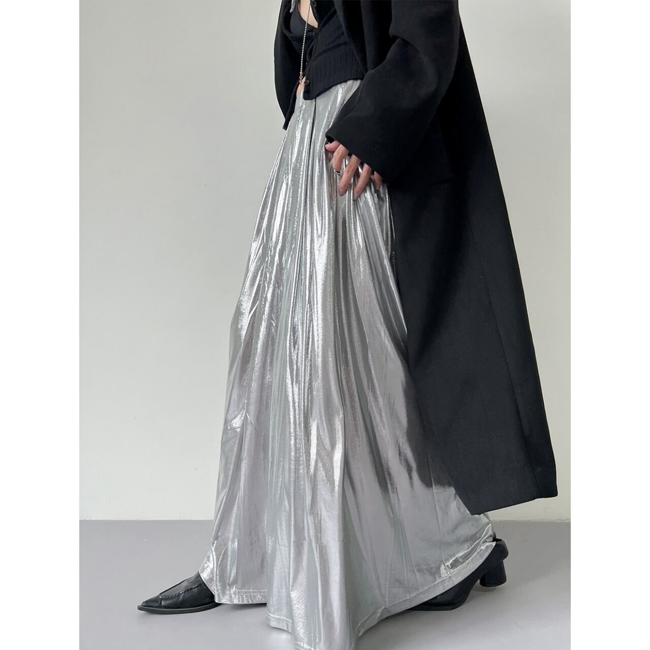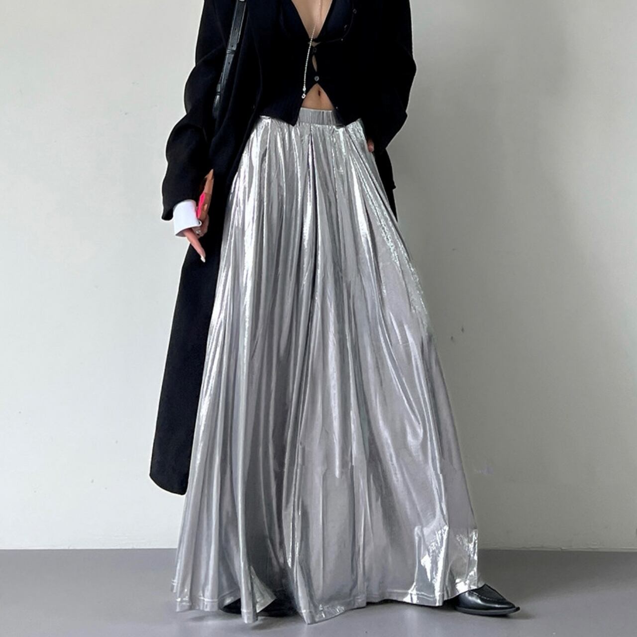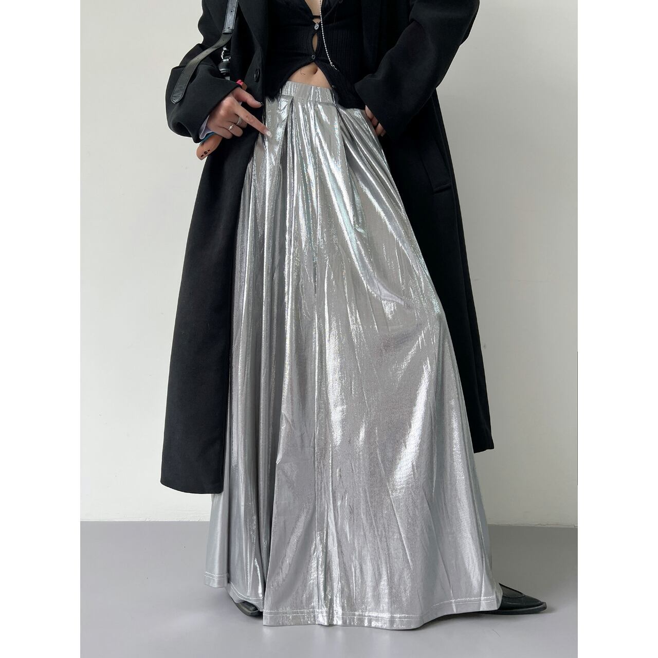 Glossy Maxi A-Line Long Skirt 01159