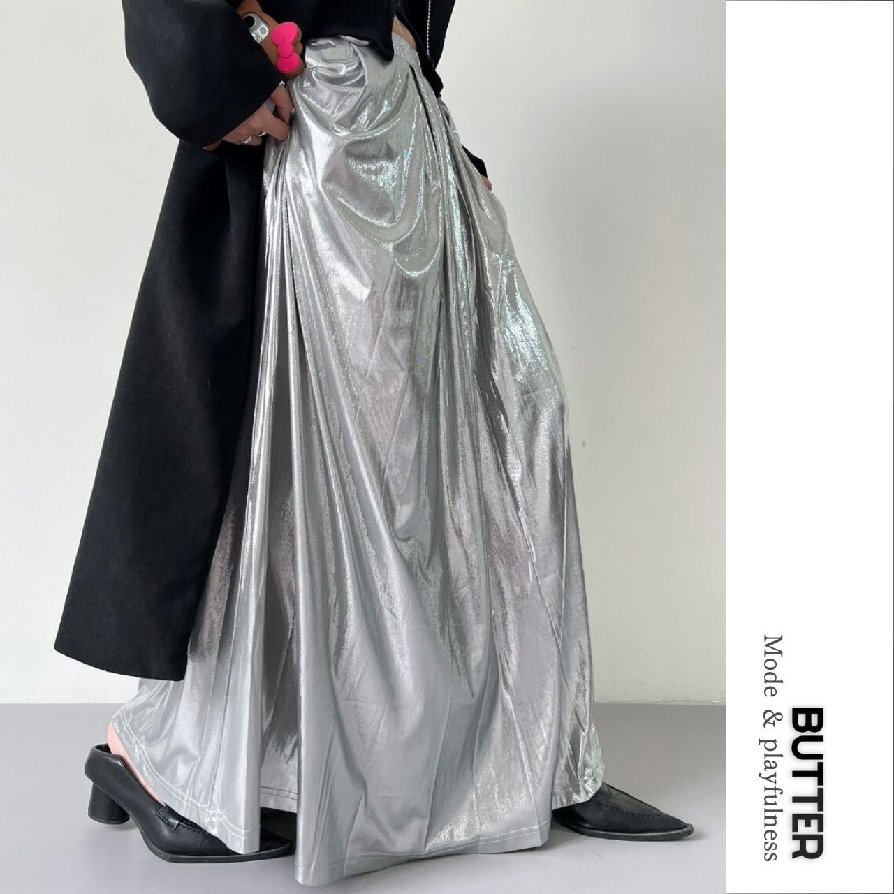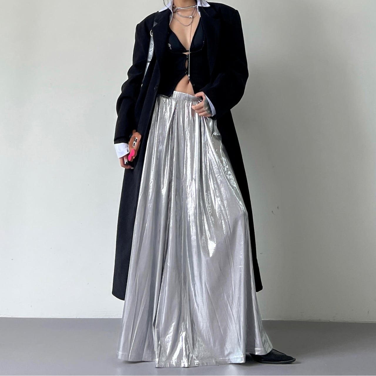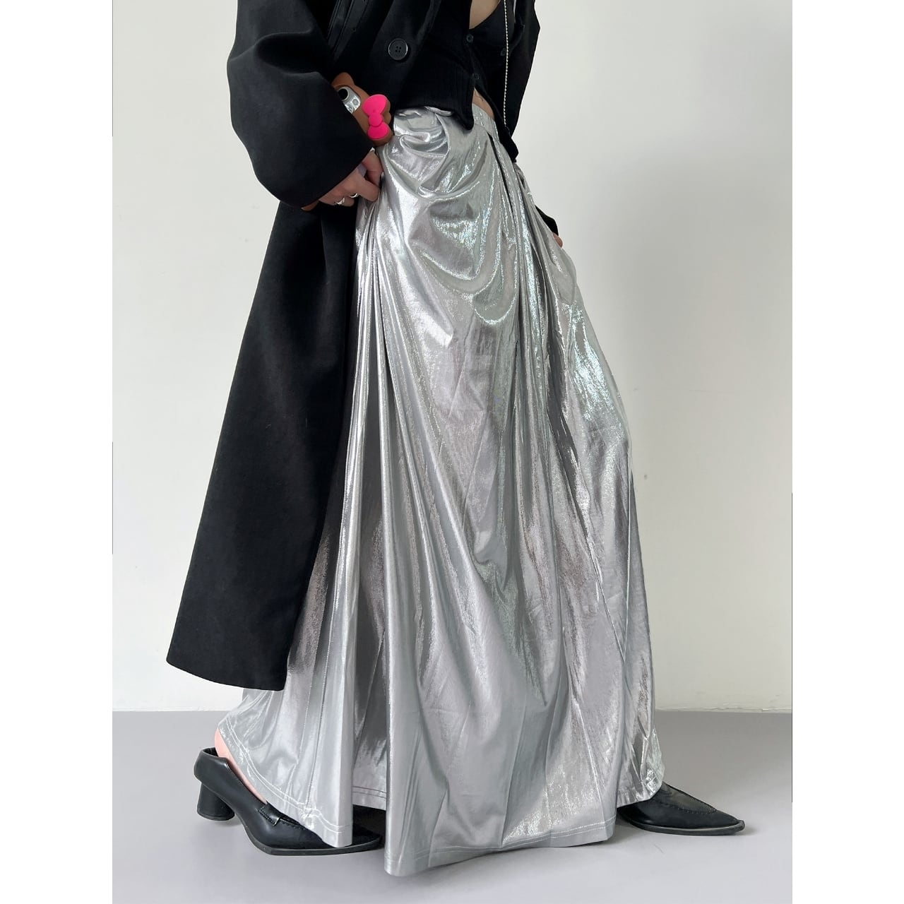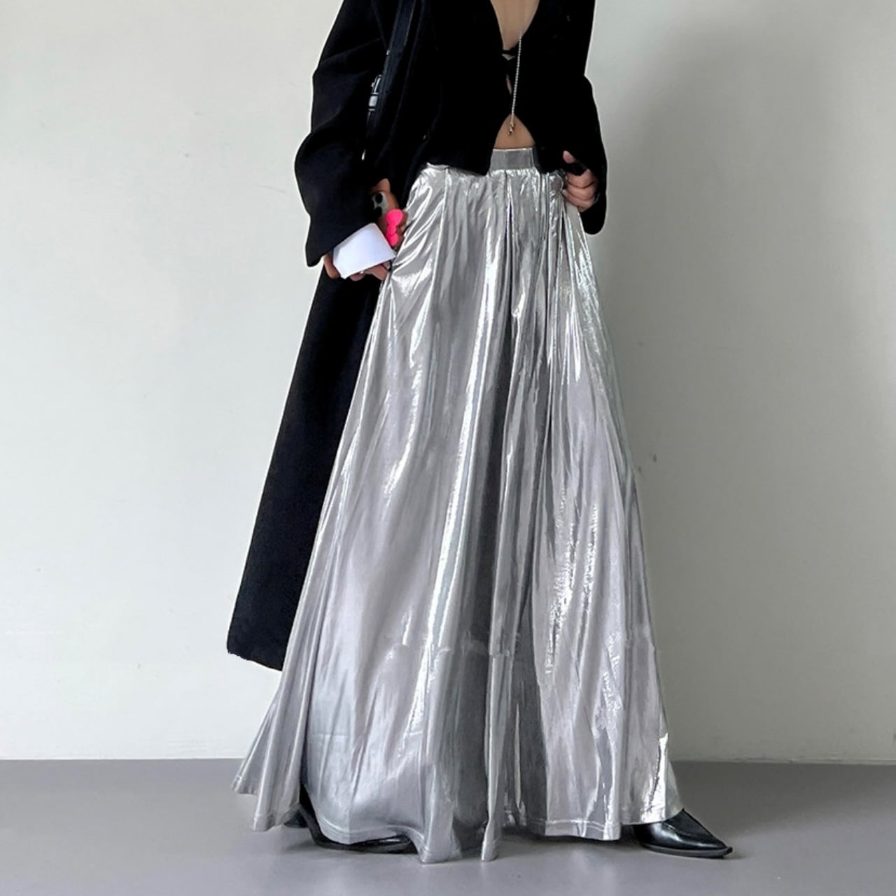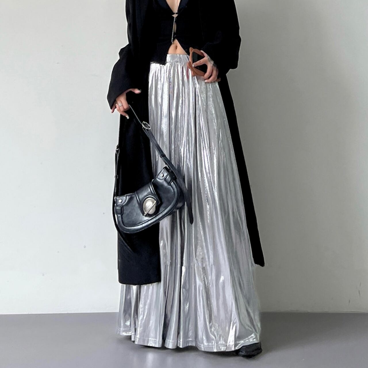 Glossy Maxi A-Line Long Skirt 01159