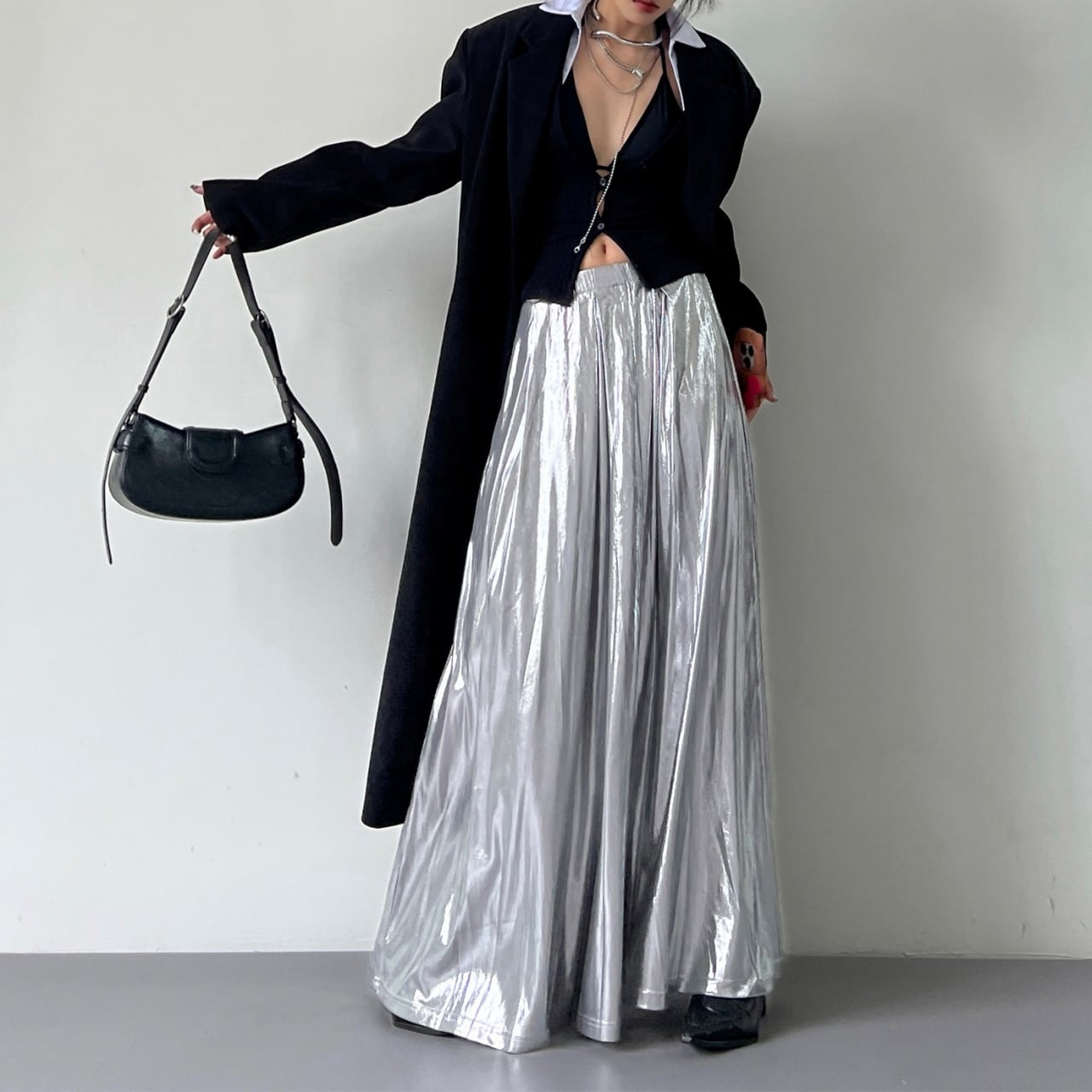 シンプルなトップスと合わせるだけで、洗練されたスタイリングが完成するアイテムです。