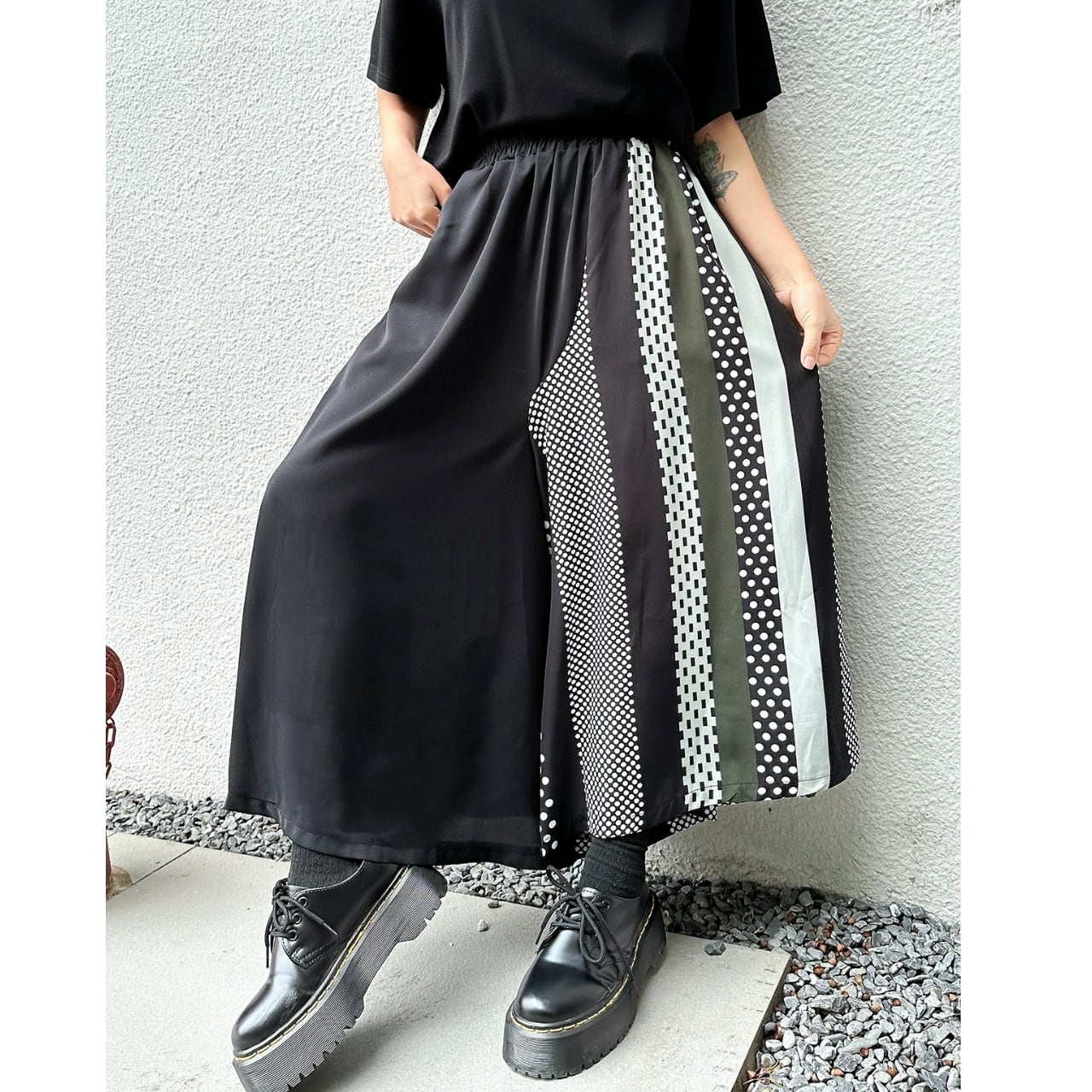 ウエスト:66-120cm ヒップ:140cm 裾幅:71cm スカート丈:80cm