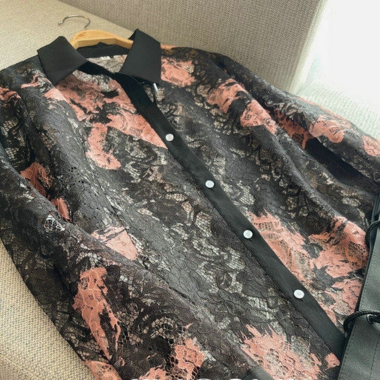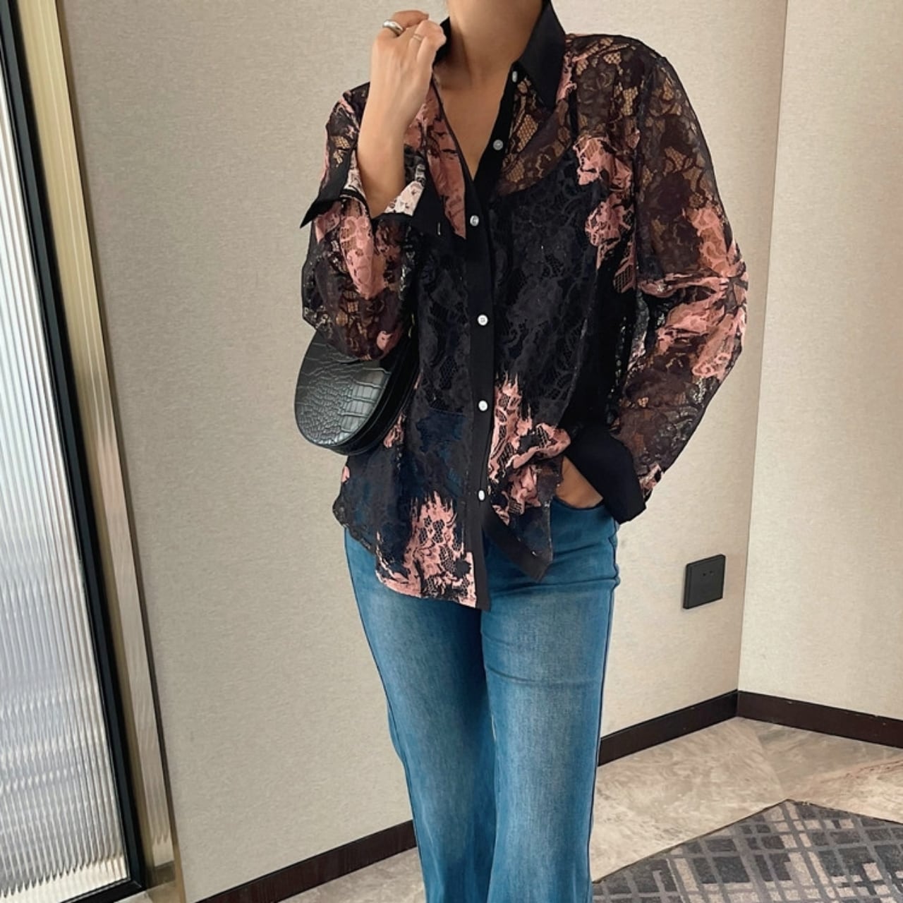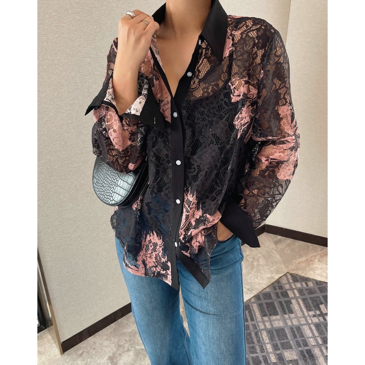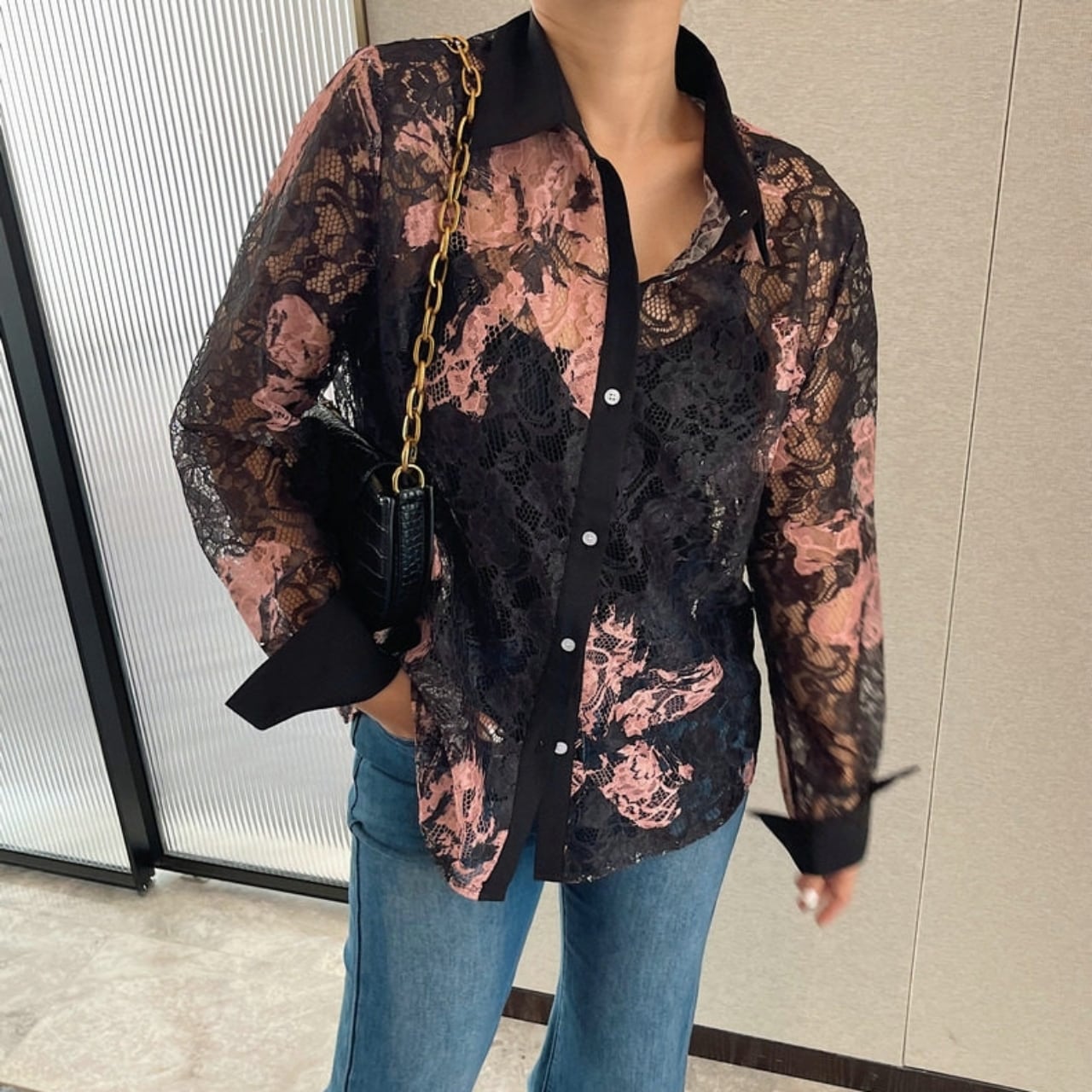 Lace Pattern Sheer Shirt 01189