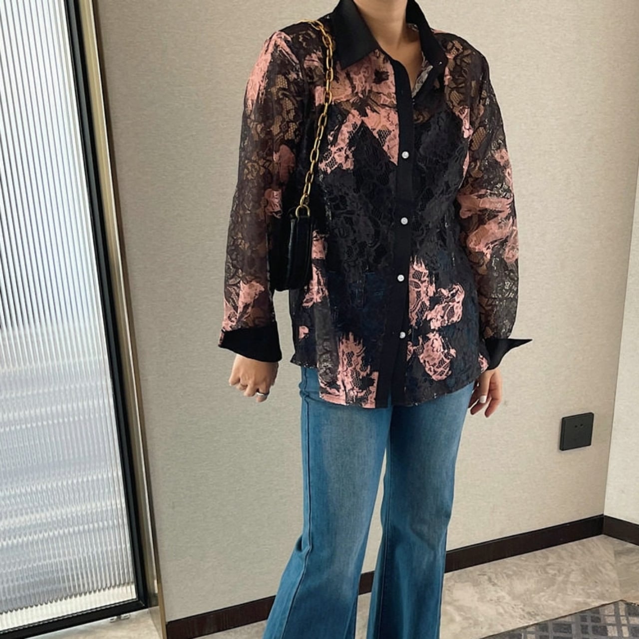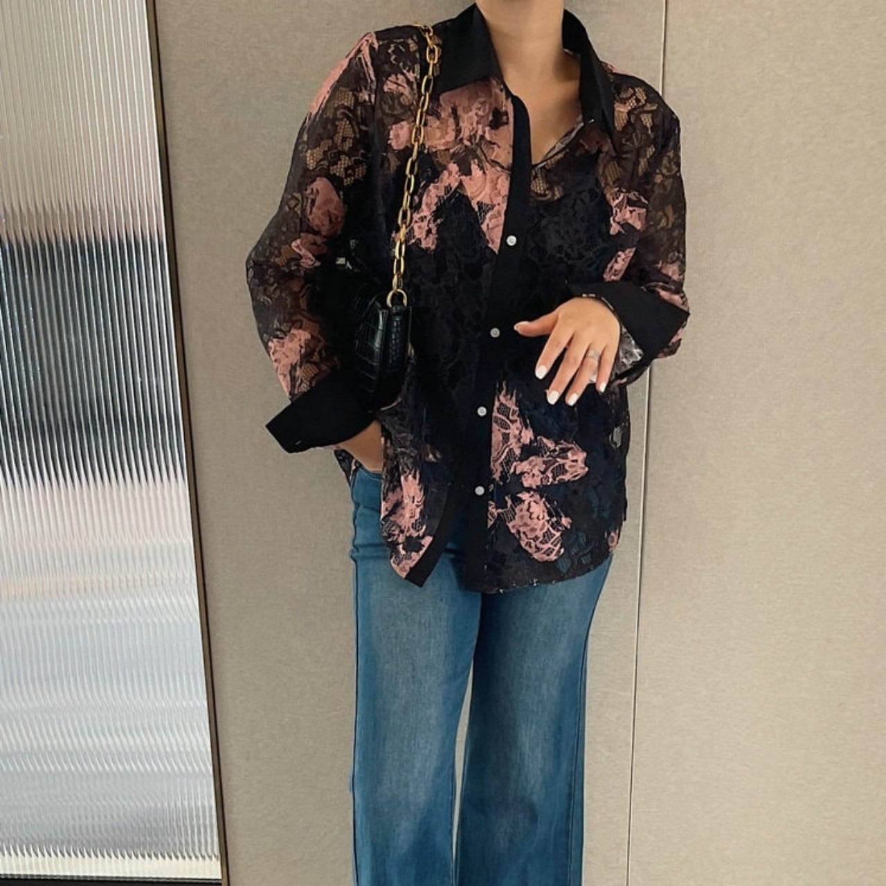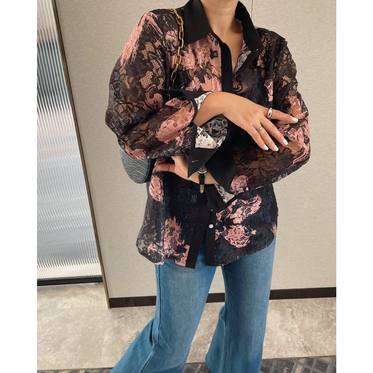 Lace Pattern Sheer Shirt 01189