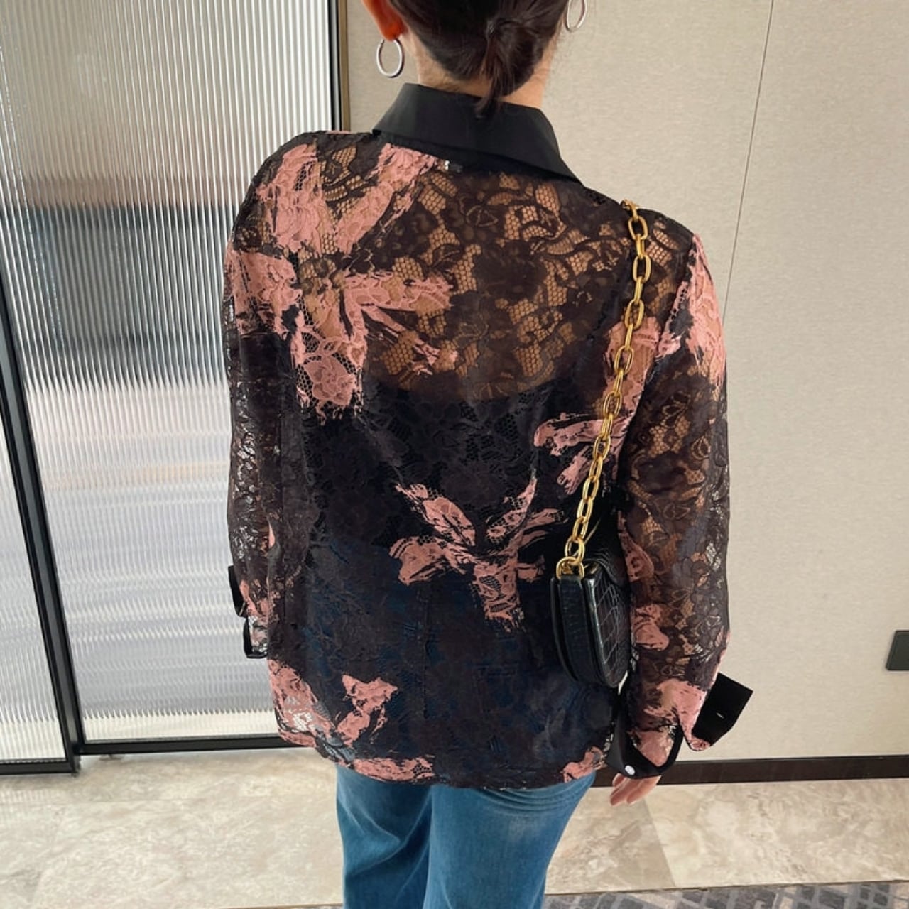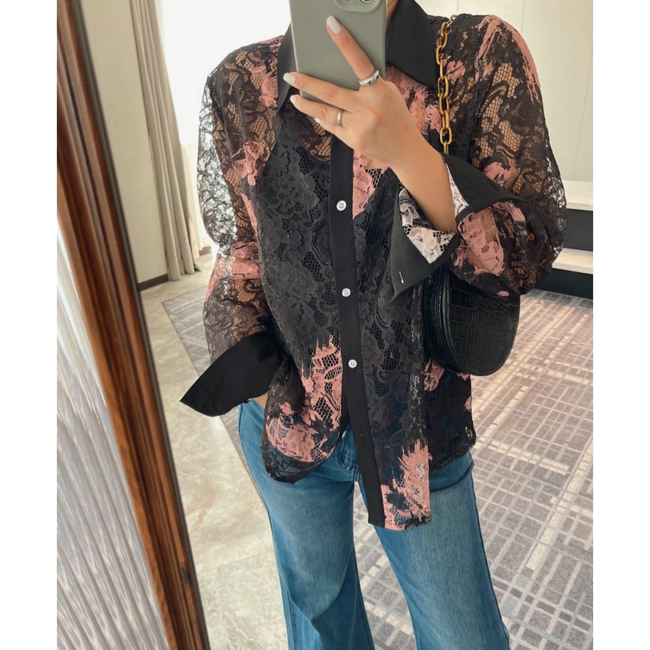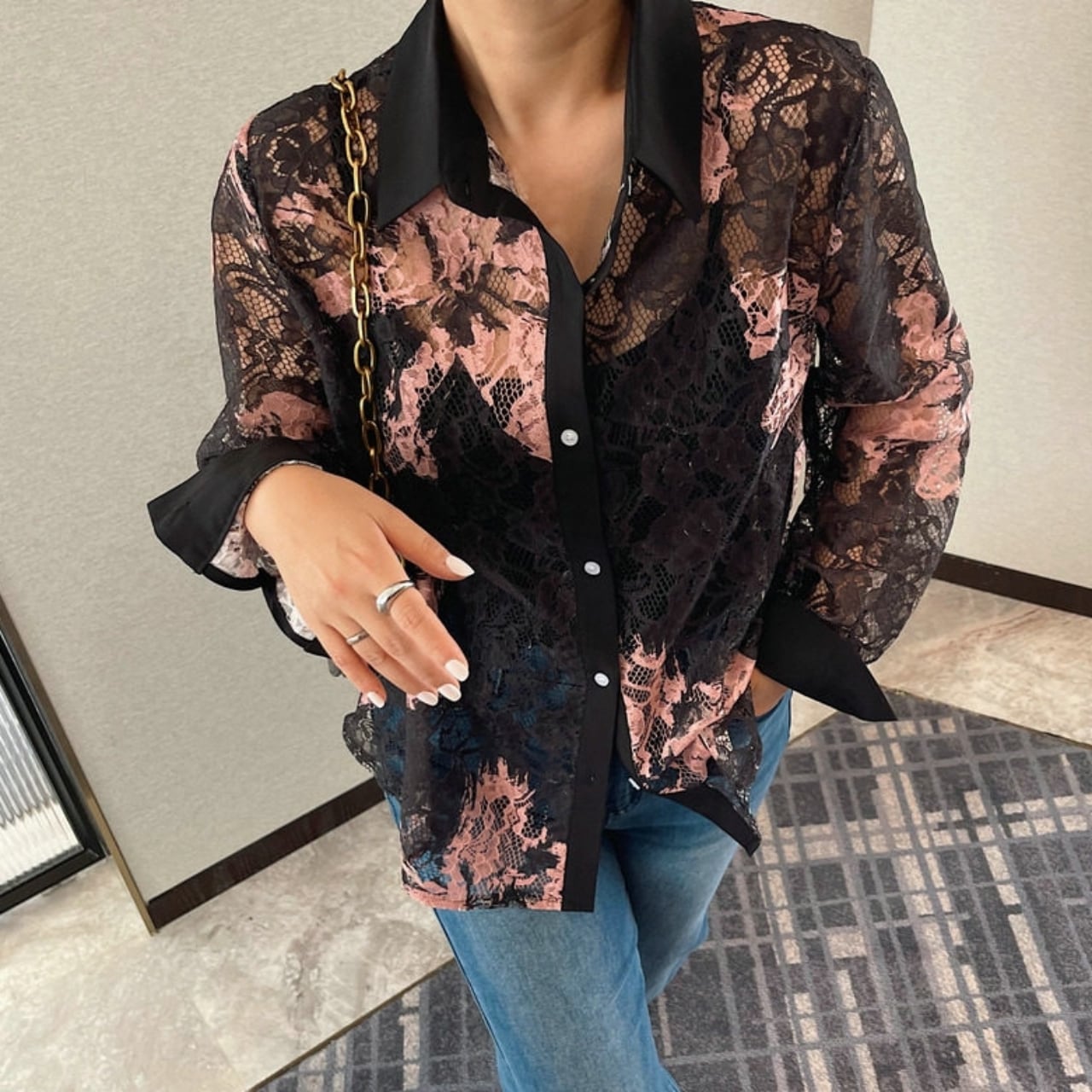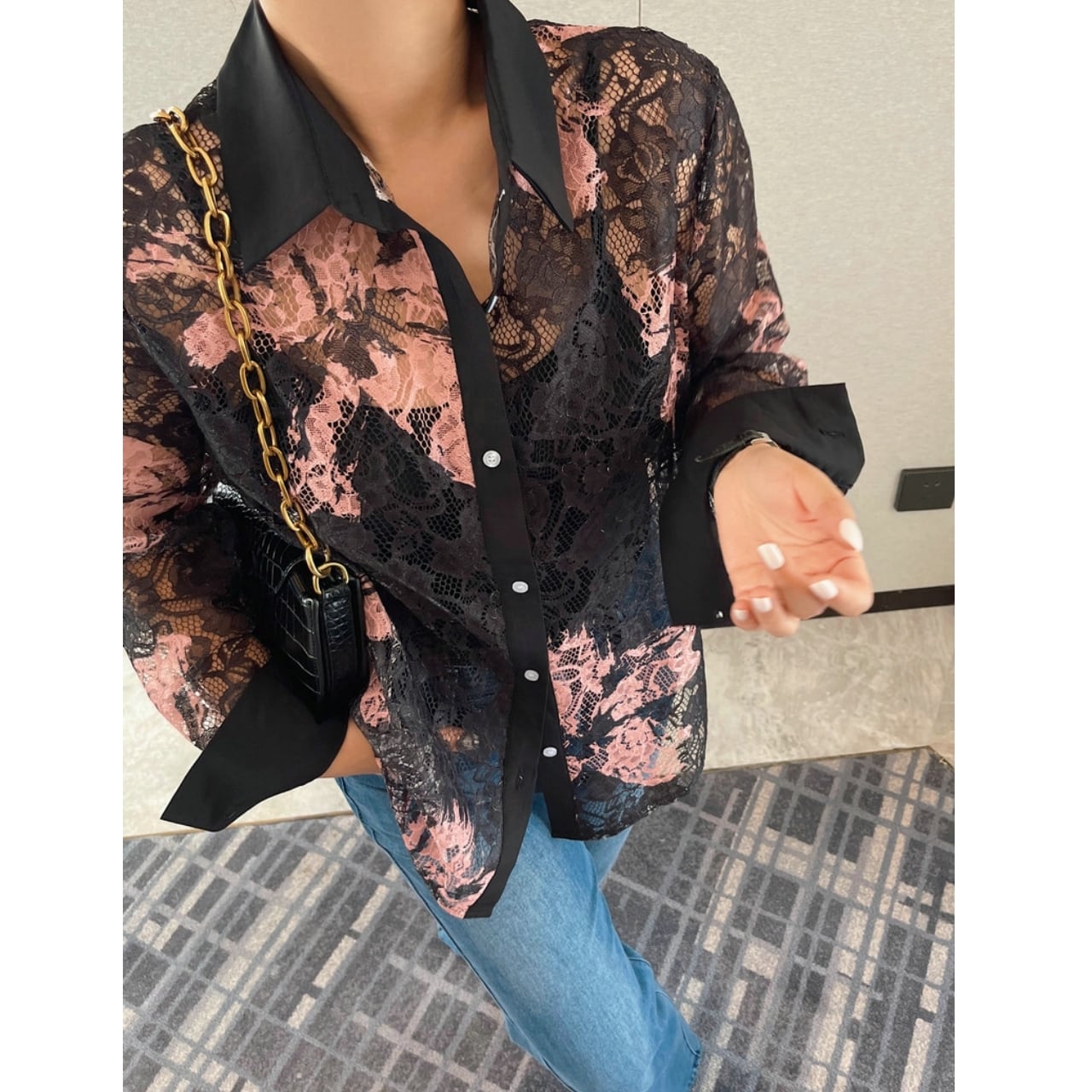 Lace Pattern Sheer Shirt 01189