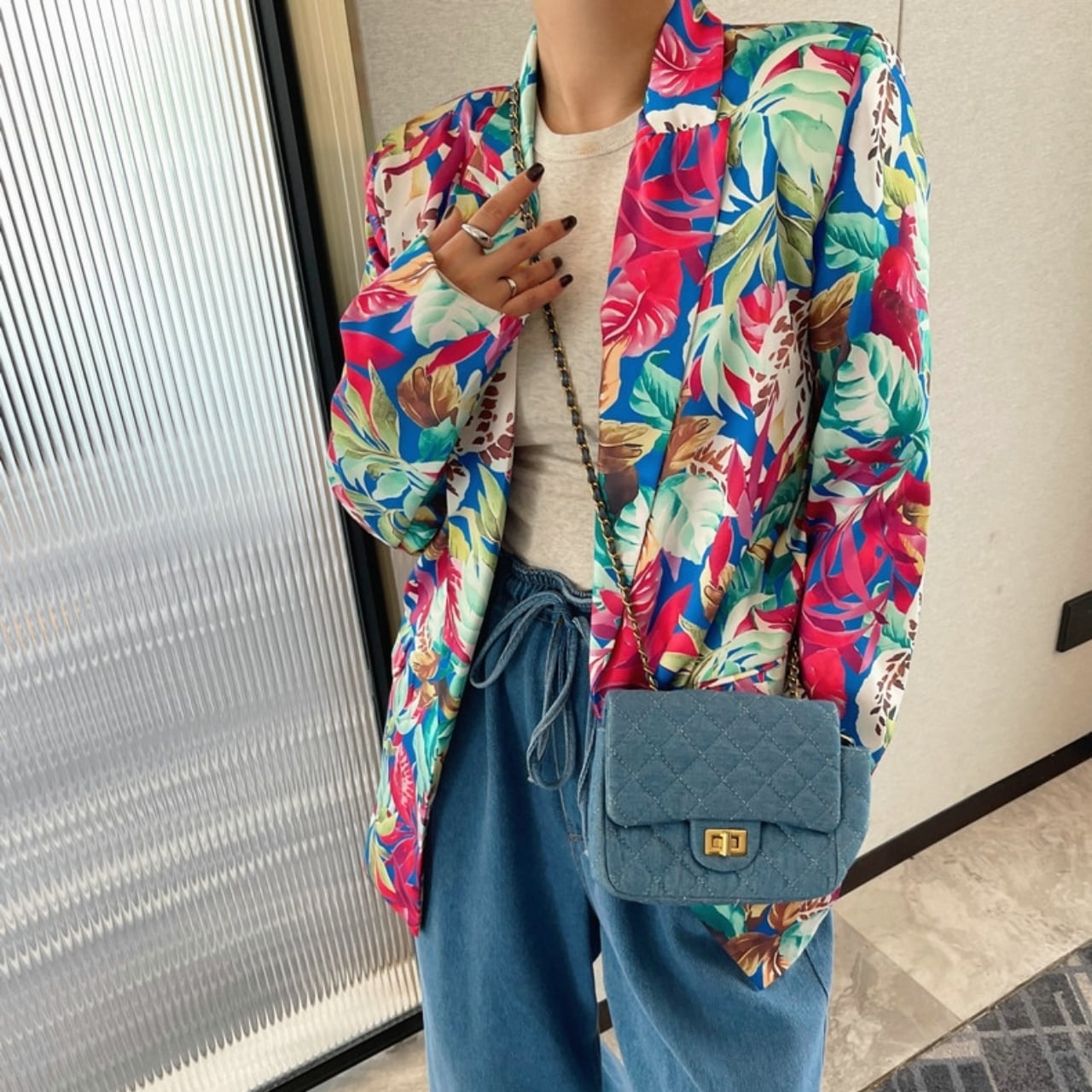 シンプルなトップスやボトムスに合わせるだけで、華やかな雰囲気をプラスできます。