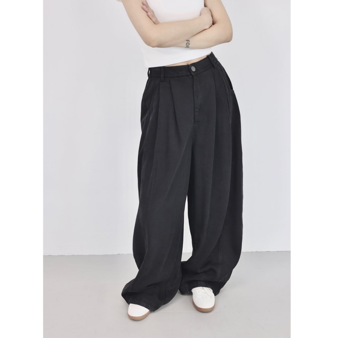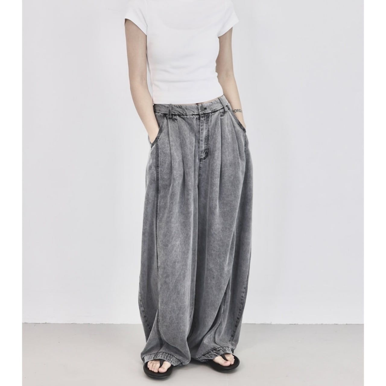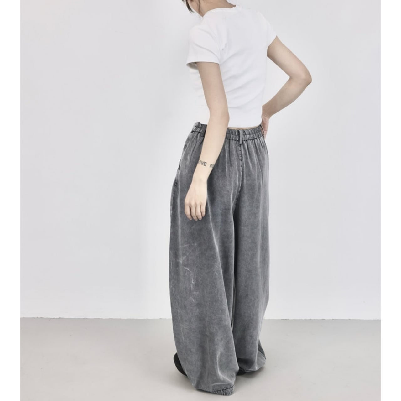 シンプルなトップスと合わせるだけで、抜けのあるバランスに仕上がります。
