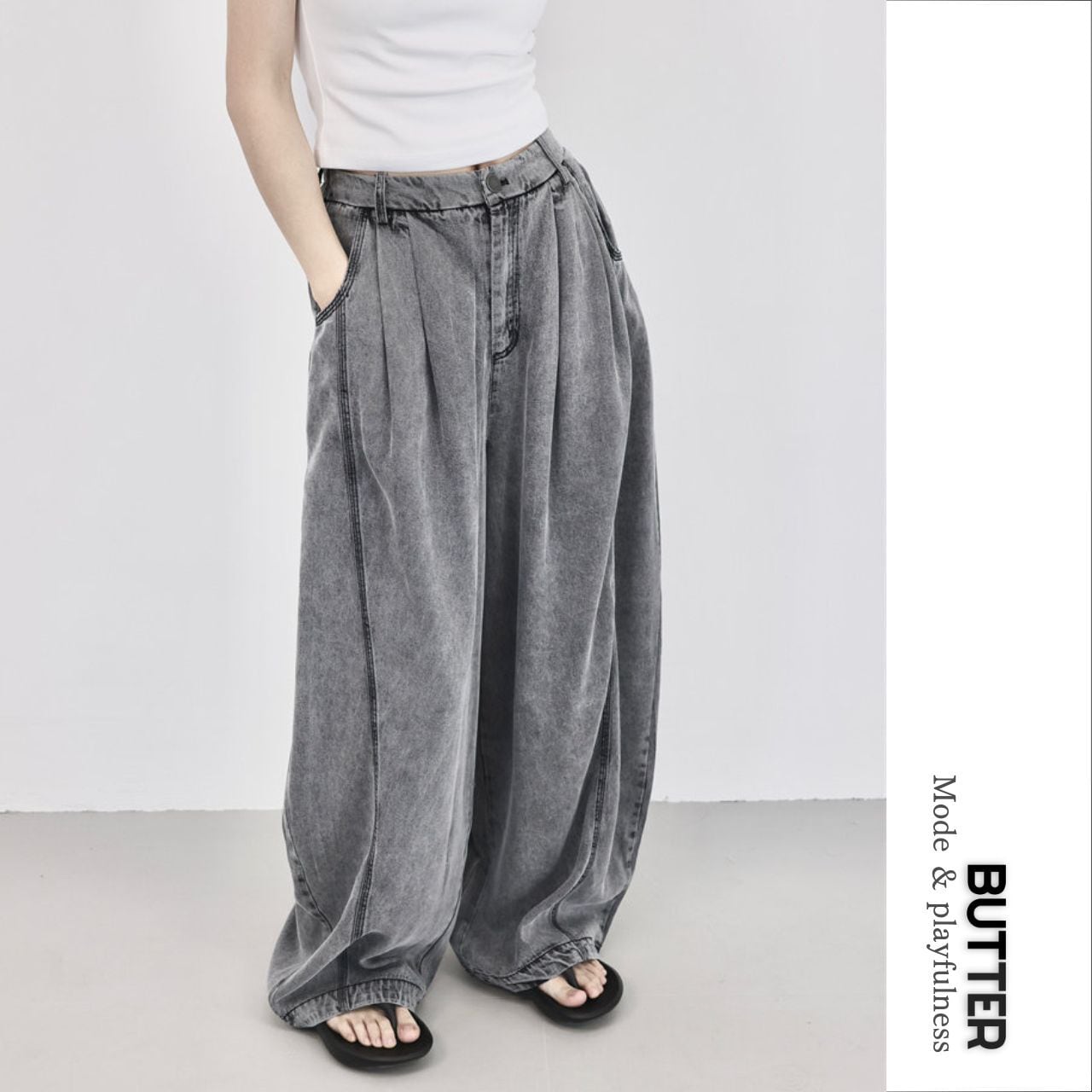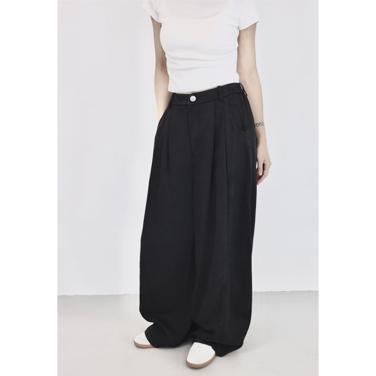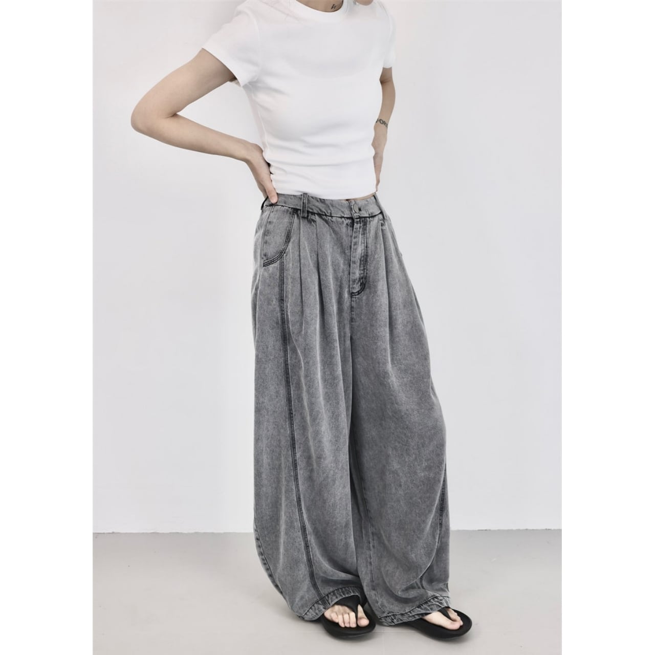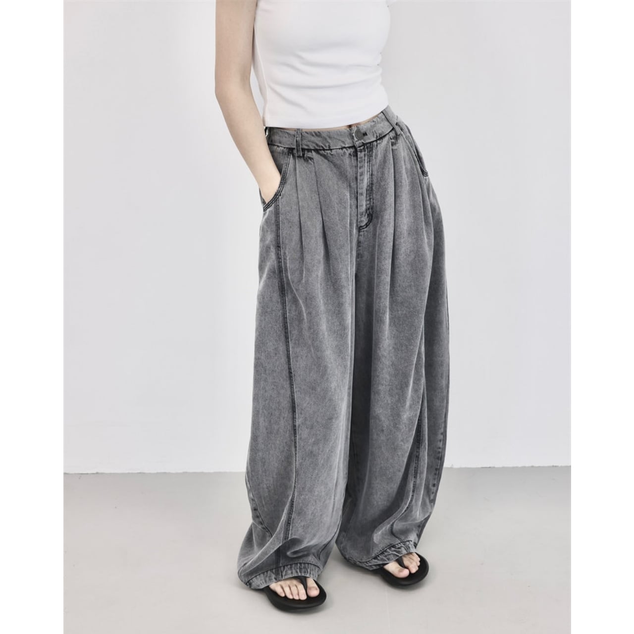 シンプルなトップスと合わせるだけで、抜けのあるバランスに仕上がります。