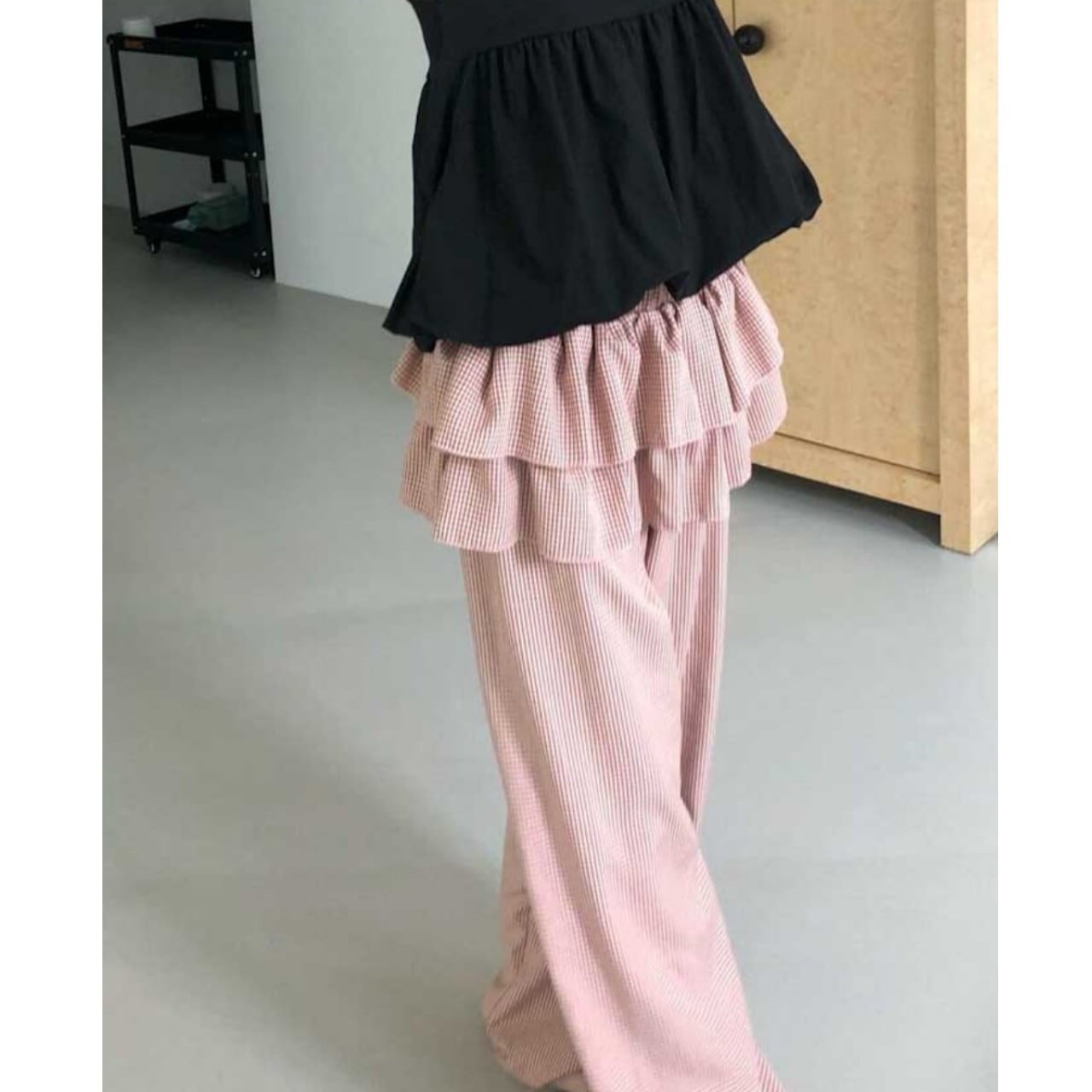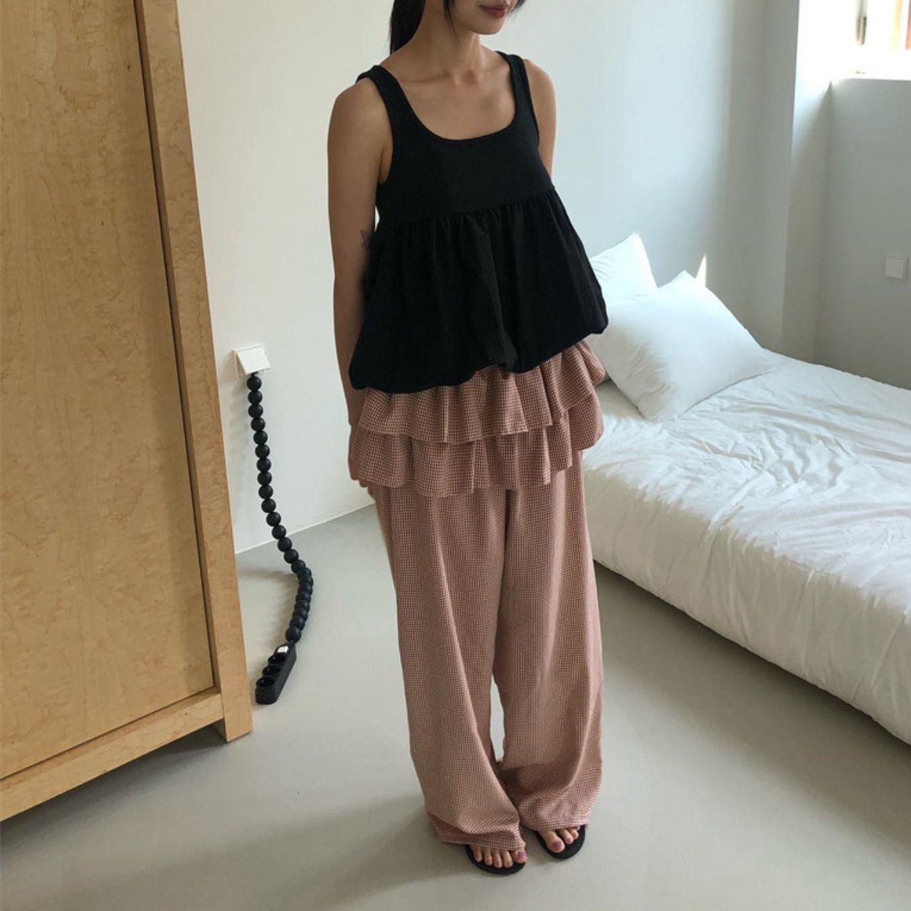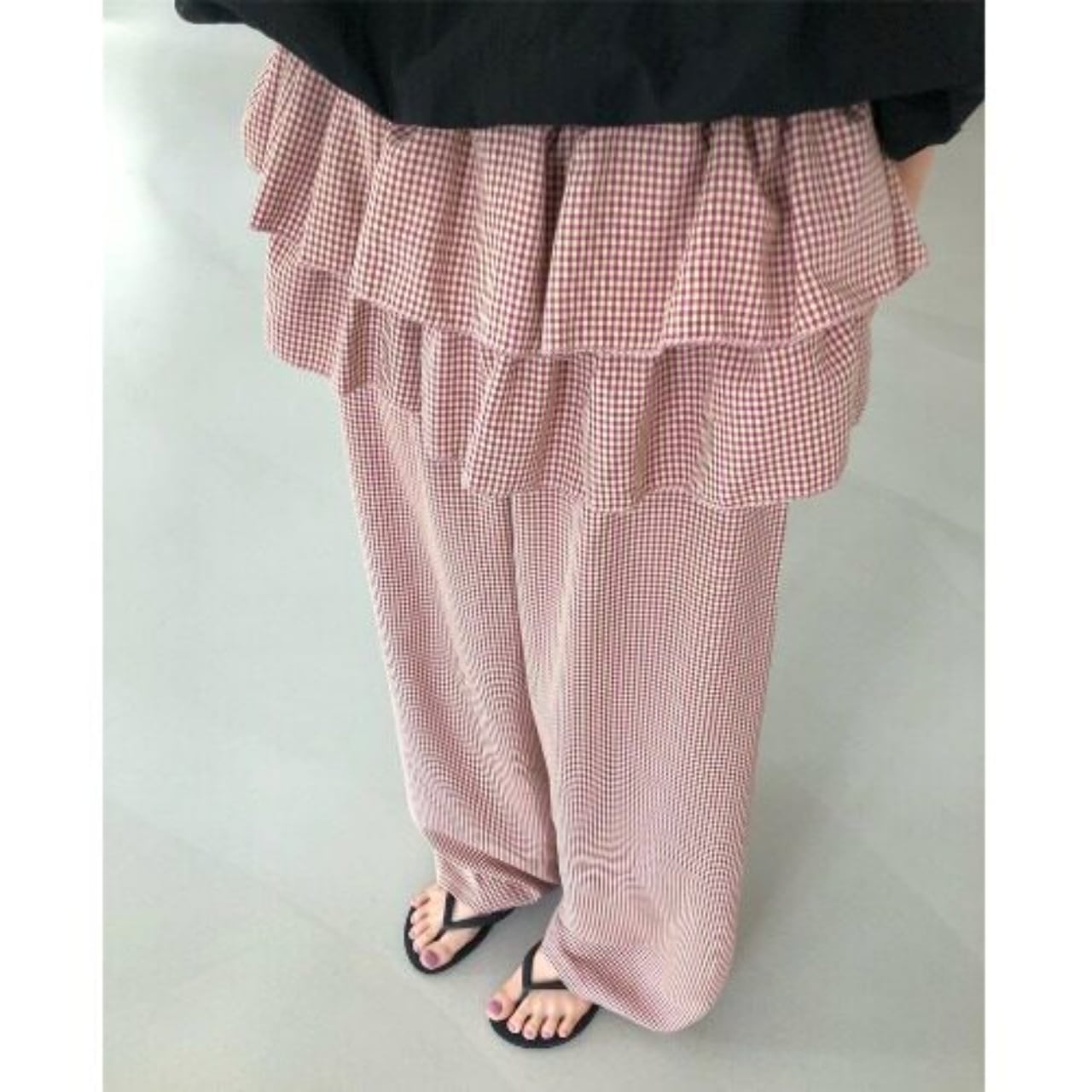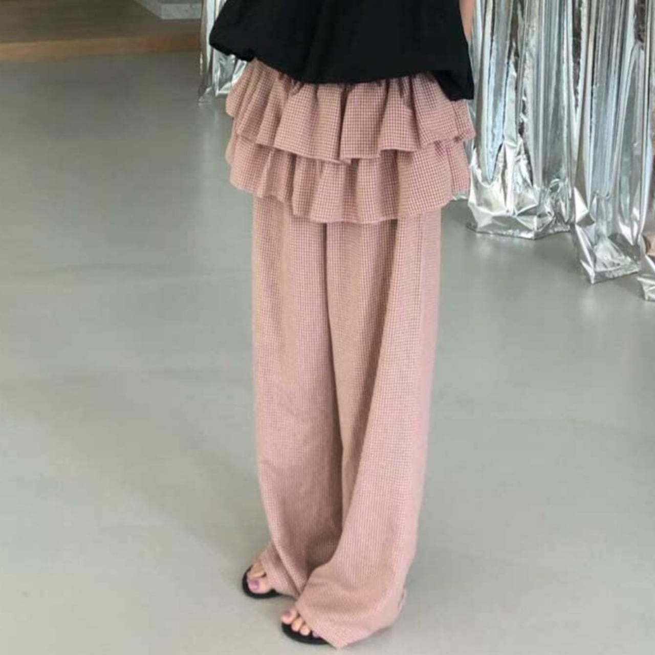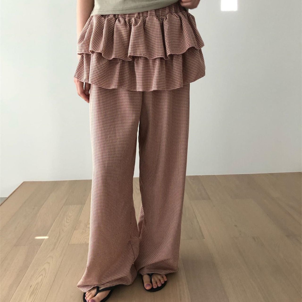Check Ruffles Wide Leg Pants 01207