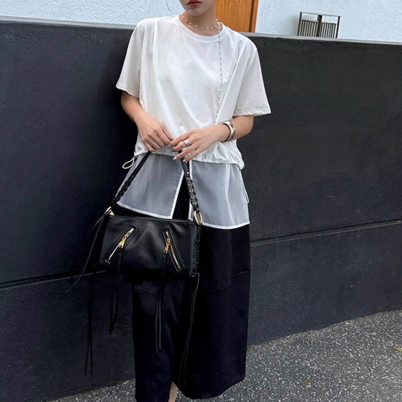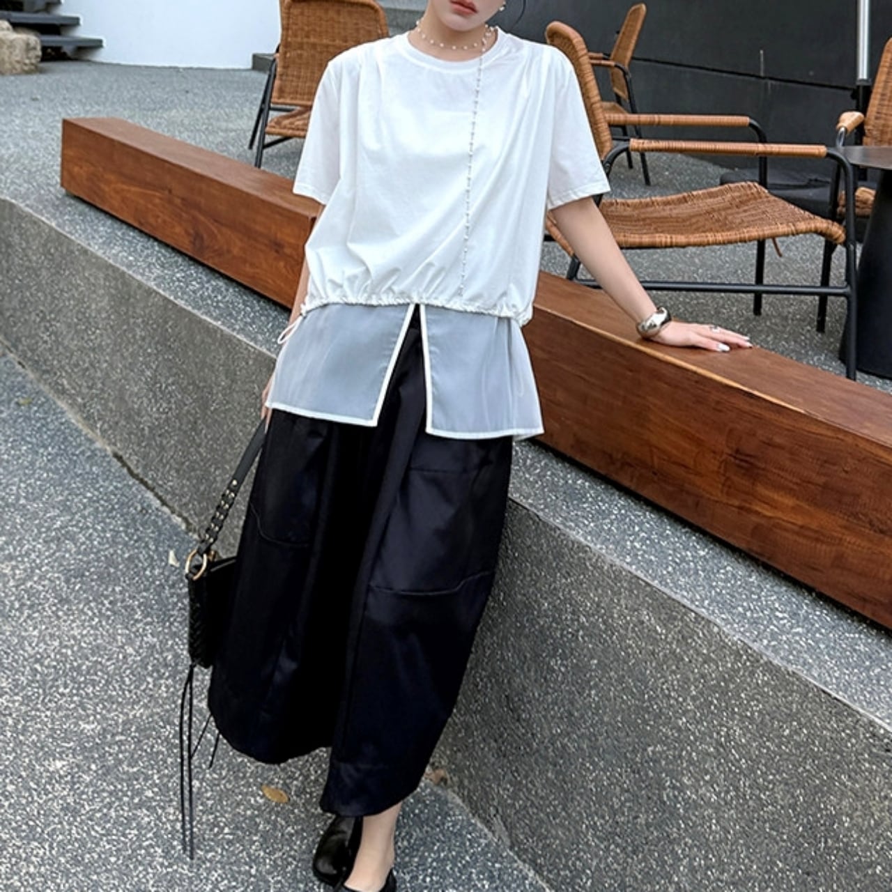肩幅:43cm 胸囲:130cm 袖丈:22cm 着丈:53/73cm
