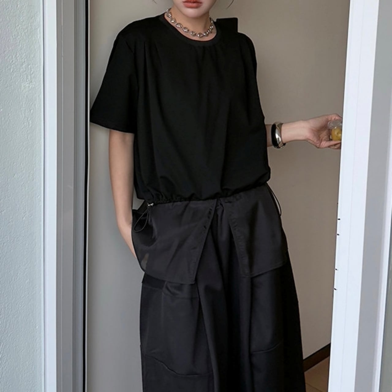 裾のドローストリングでシルエットを自在に調整でき、着るだけでバランスの取れた着こなしに仕上がります。