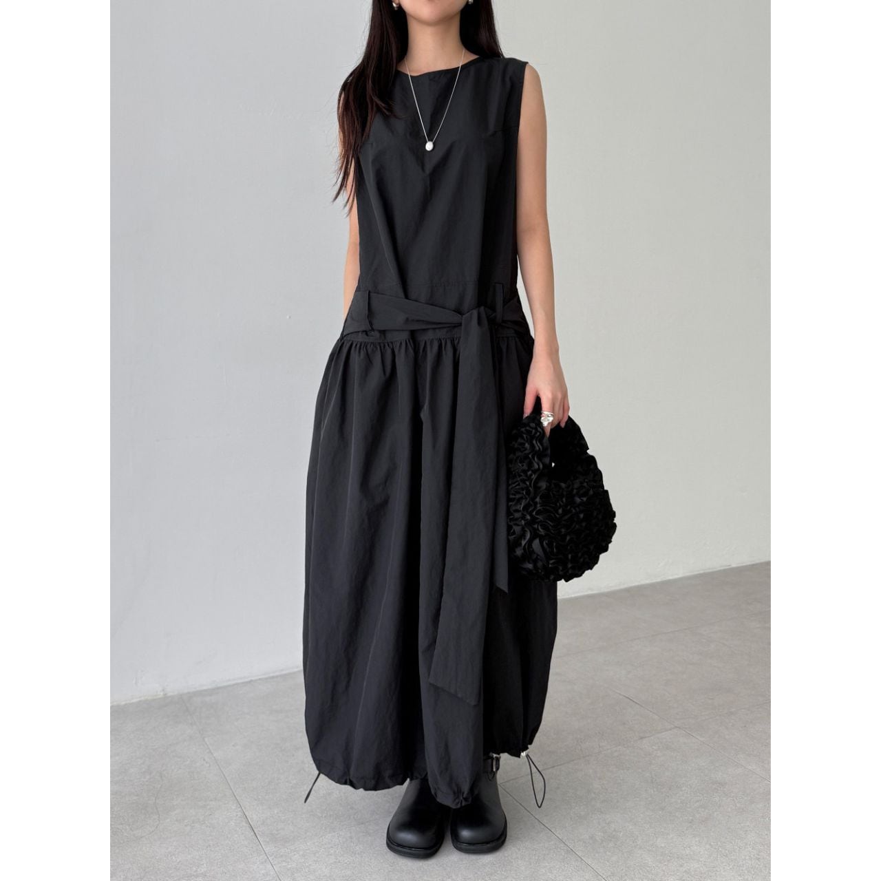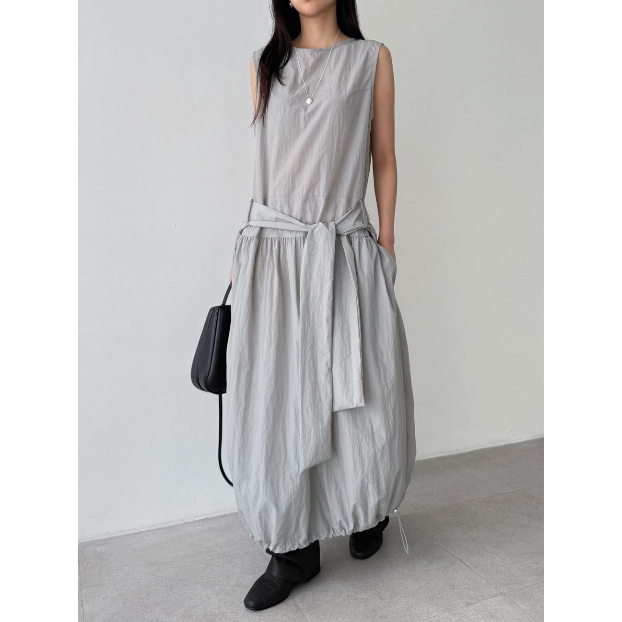 ウエストでシルエットにメリハリを加え、モードなバランスを演出。